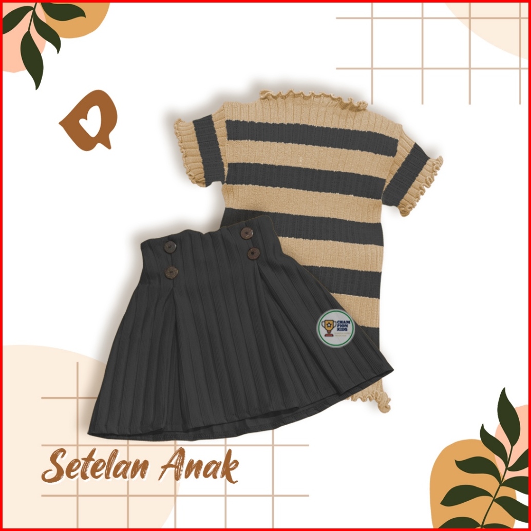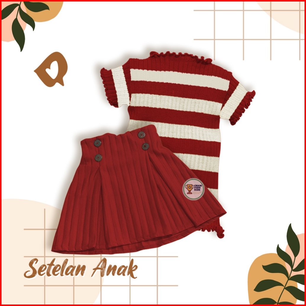 Setelan Anak - Set Anak Rajut Jisoo Blaster Rok Poppy 4 Kancing Korean Style Championkids