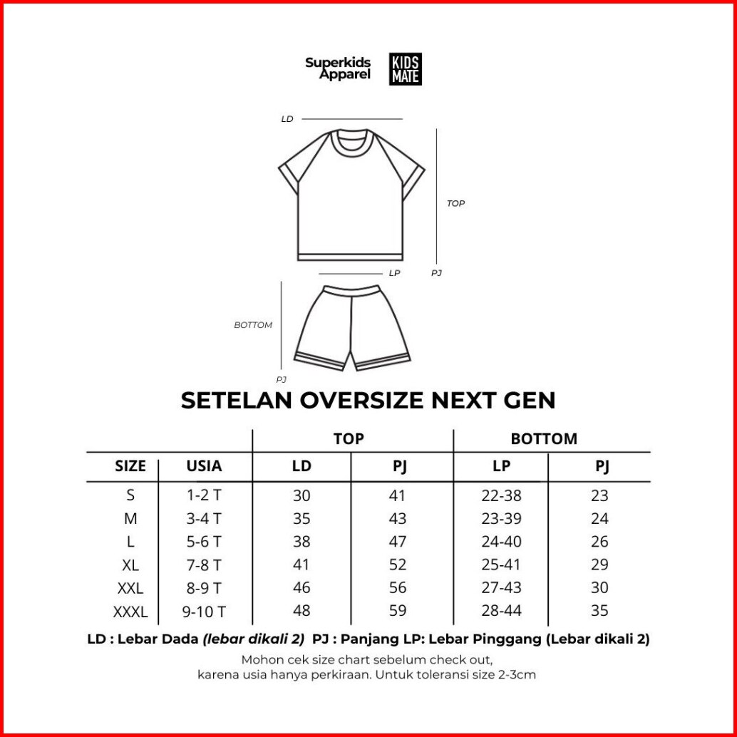 S (1-2T), M (3-4T), L (5-6T), XL (7-8T), XXL (8-9T), XXXL (9-10T)