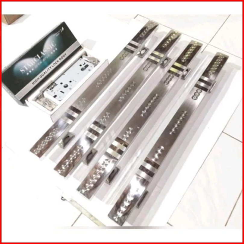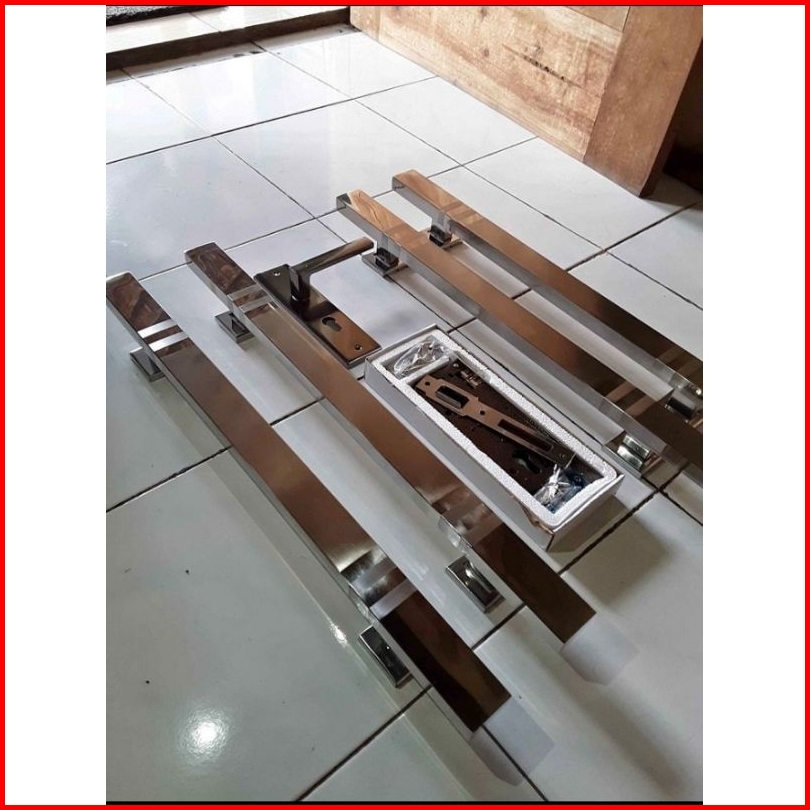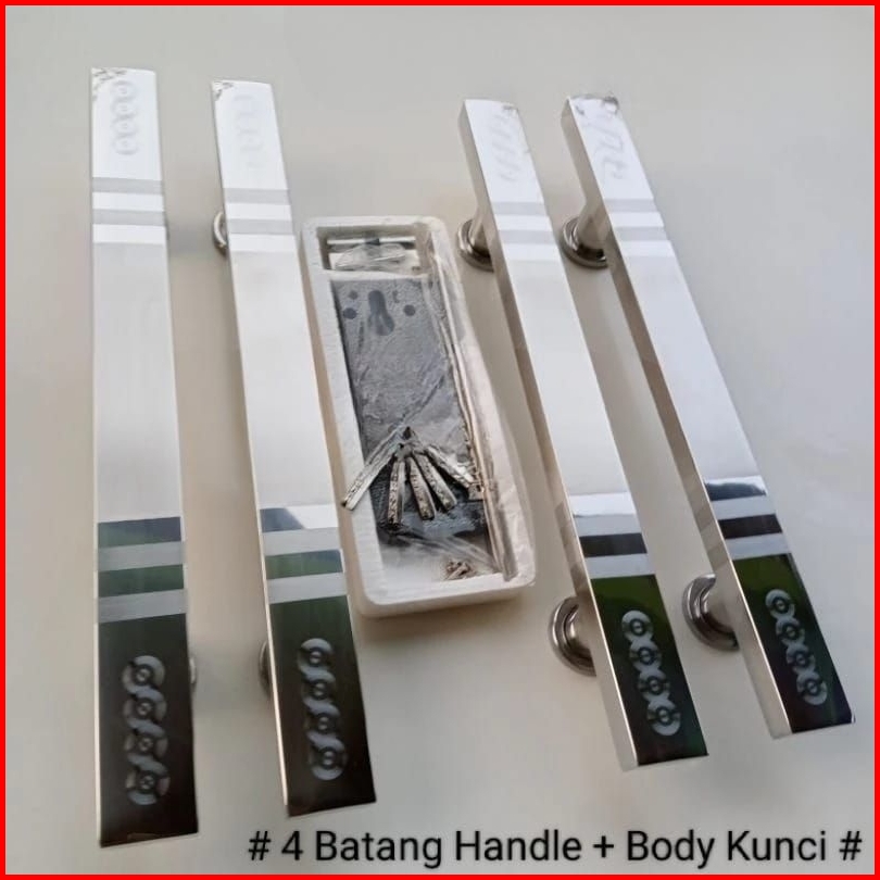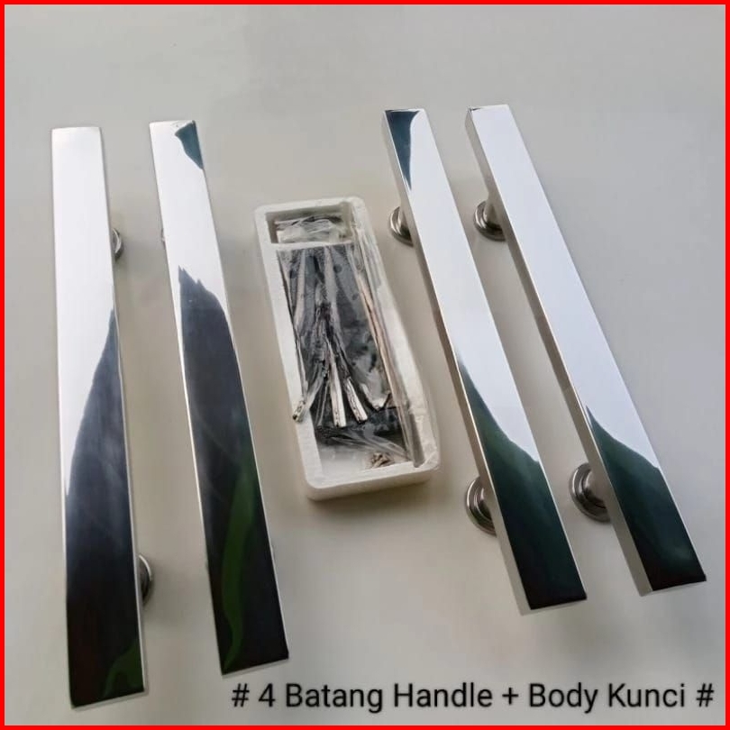 Handle Gagang Pintu Rumah Minimalis 1set Isi 4pcs Kunci 45cm Bahan Stainles Anti Karat