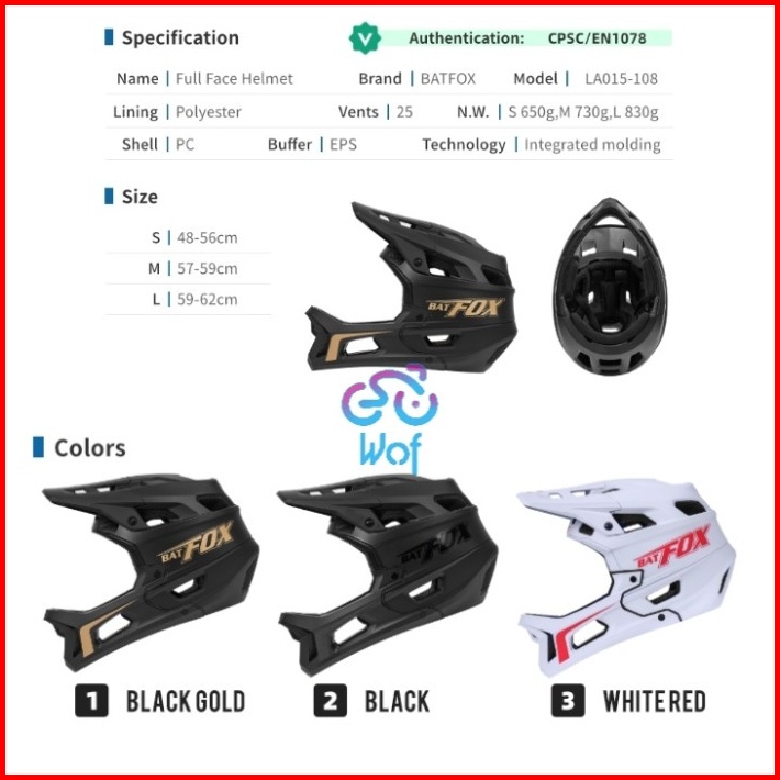 Batfox La015-108 Full Face Helmet Fullface Helm Sepeda Mtb Xc Am Enduro Downhill