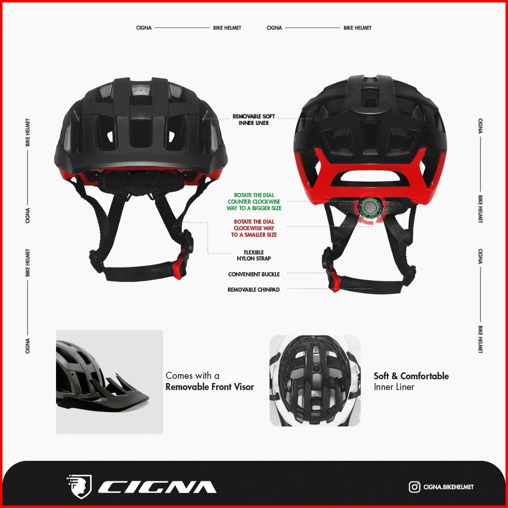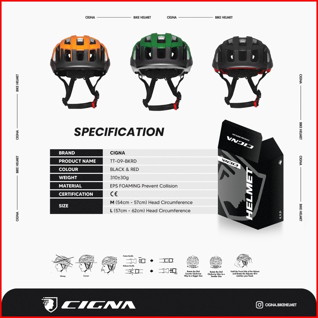 Cigna Tt-9 Bike Helmet - Helm Sepeda - Black Red Bukan Rockbros