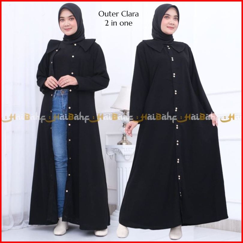 Abaya Outer Gamis Hitam Polos Jetblack Saudi Turkey Arab Umroh Simpel Elegan Two In One