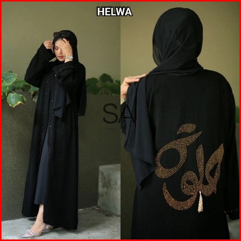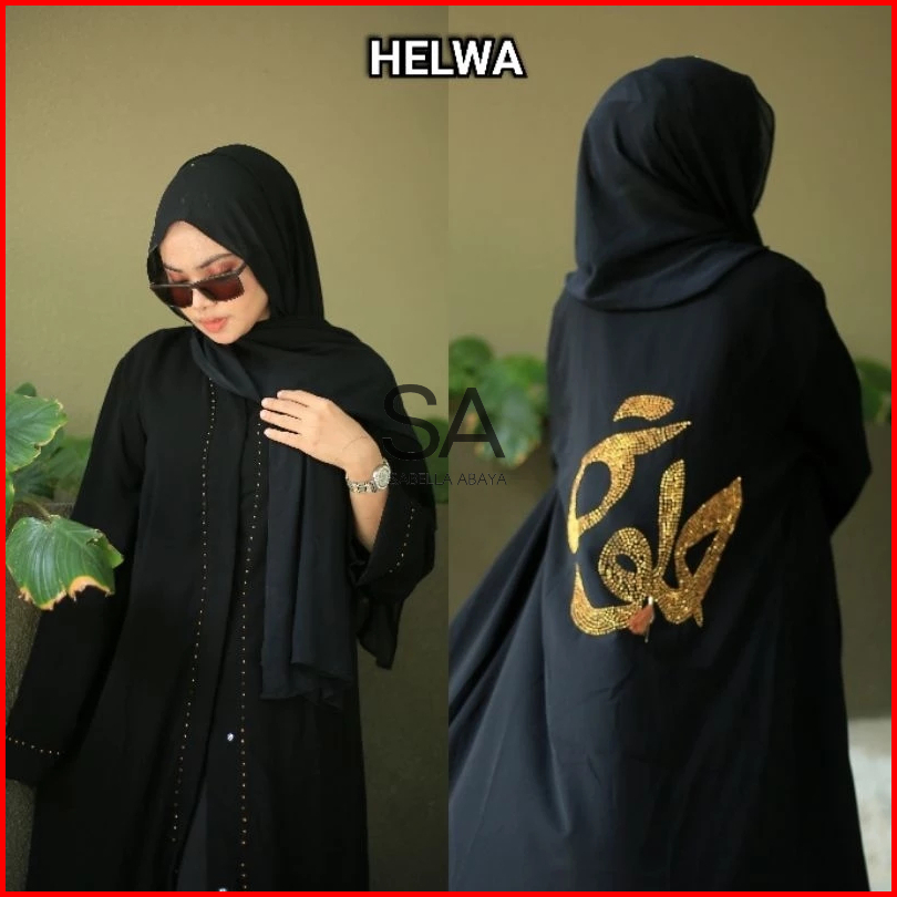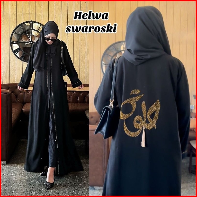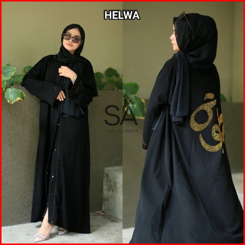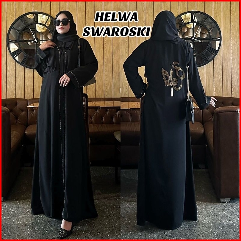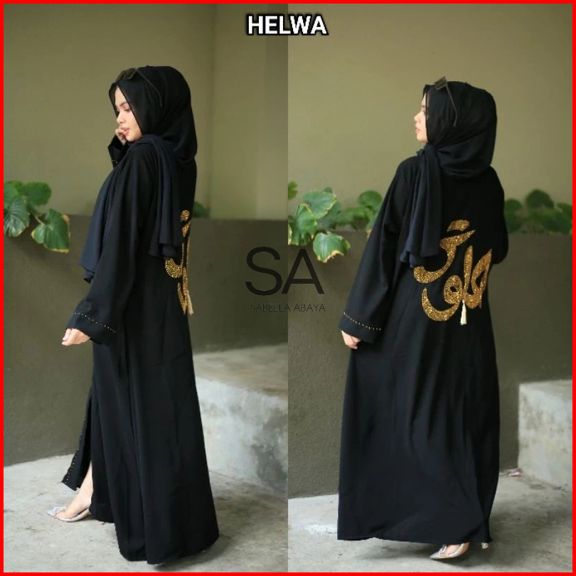 Abaya Kaligrafi Hitam Gamis Wanita Turkey Muslim Murah Terbaru Jalabiah Helwa Mom Kids Swaroski Sabella Abaya