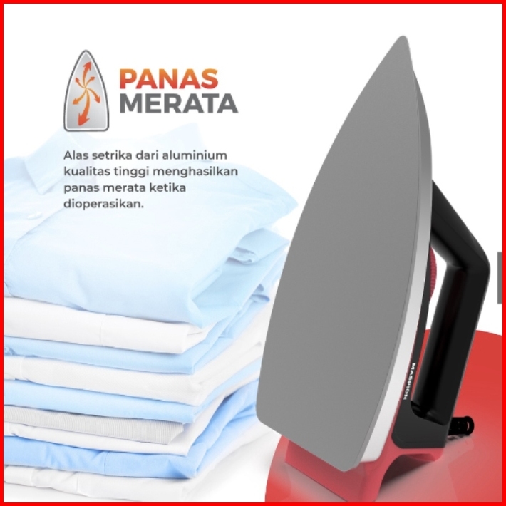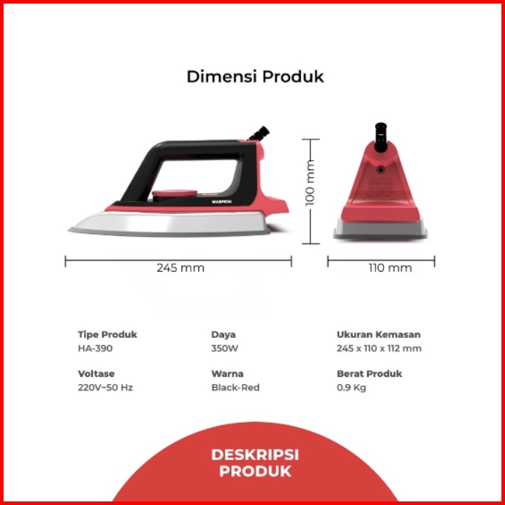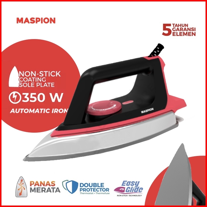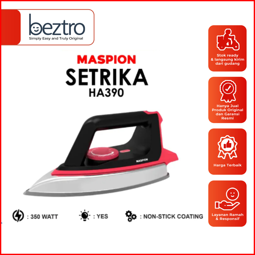 Maspion Dry Iron Ha390 Setrika Listrik 350 Watt Non Stick Coating Sole Plate Iron Low Watt Ha-390