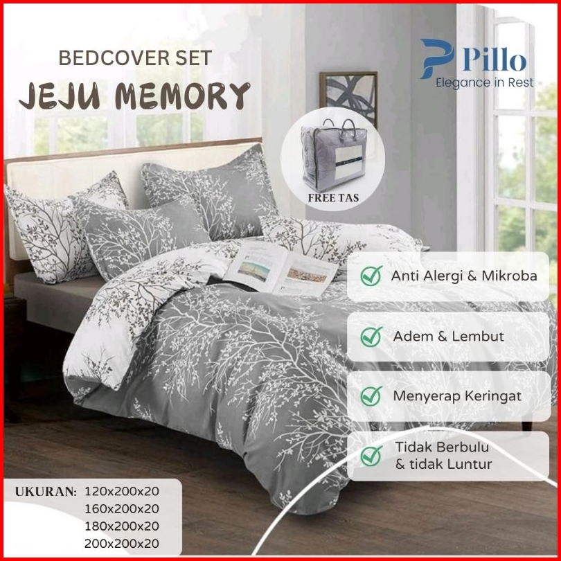 Pillo - Bedcover Set 160x200 L 180x200 Double Selimut Set Seprei Sarung Bantal Dan Sarung Guling