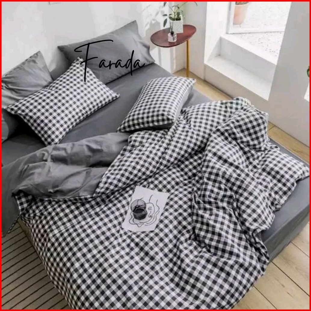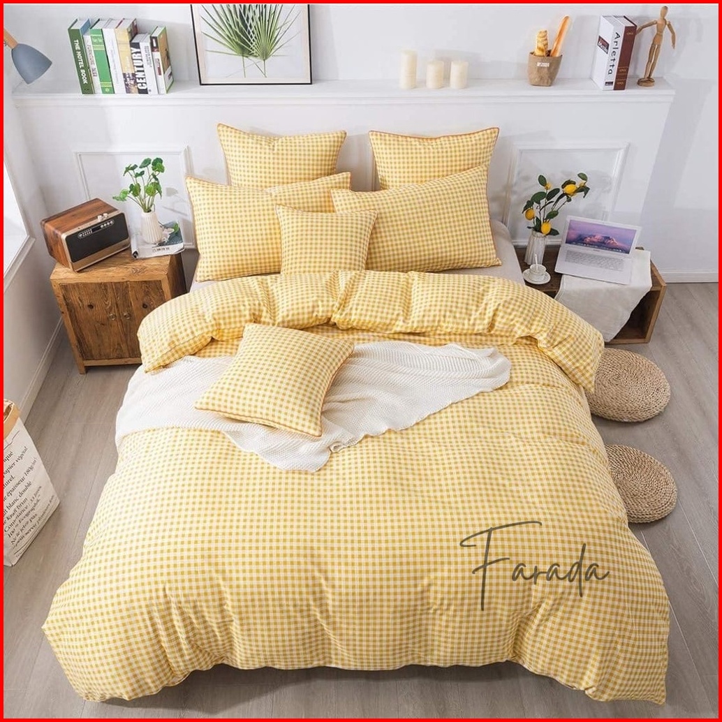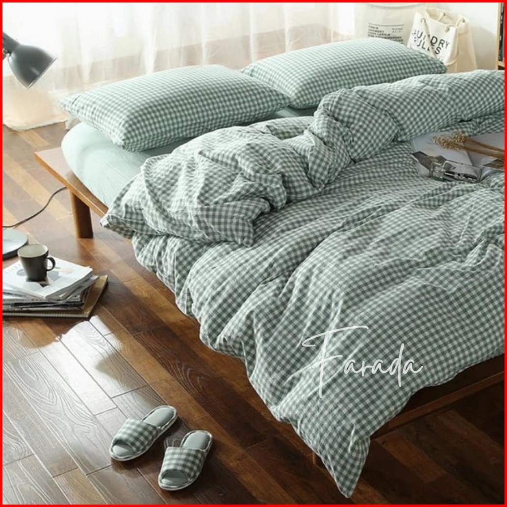 Widani Store Bedcover Set Aesthetic Korean Design Motif Kotak Kotak Kecil