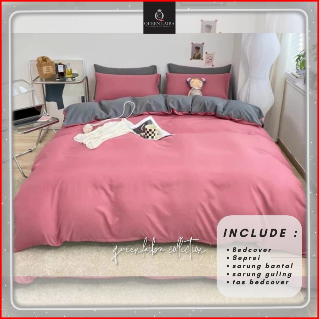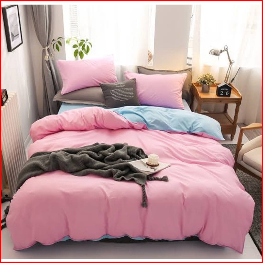 Bedcover Set Sprei Set Motif Polos Kombinasi Dusty Pink Mix Grey Set Bedcover Selimut Hotel
