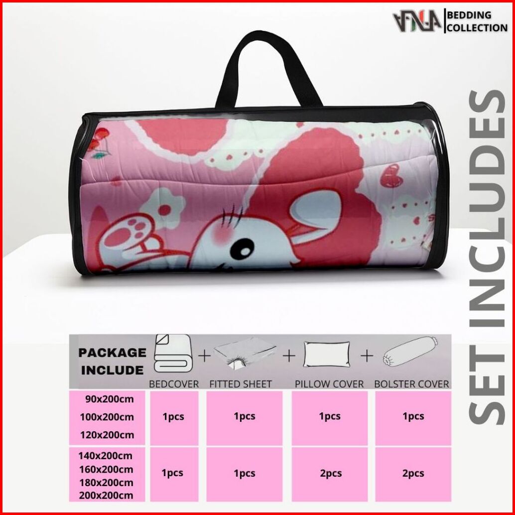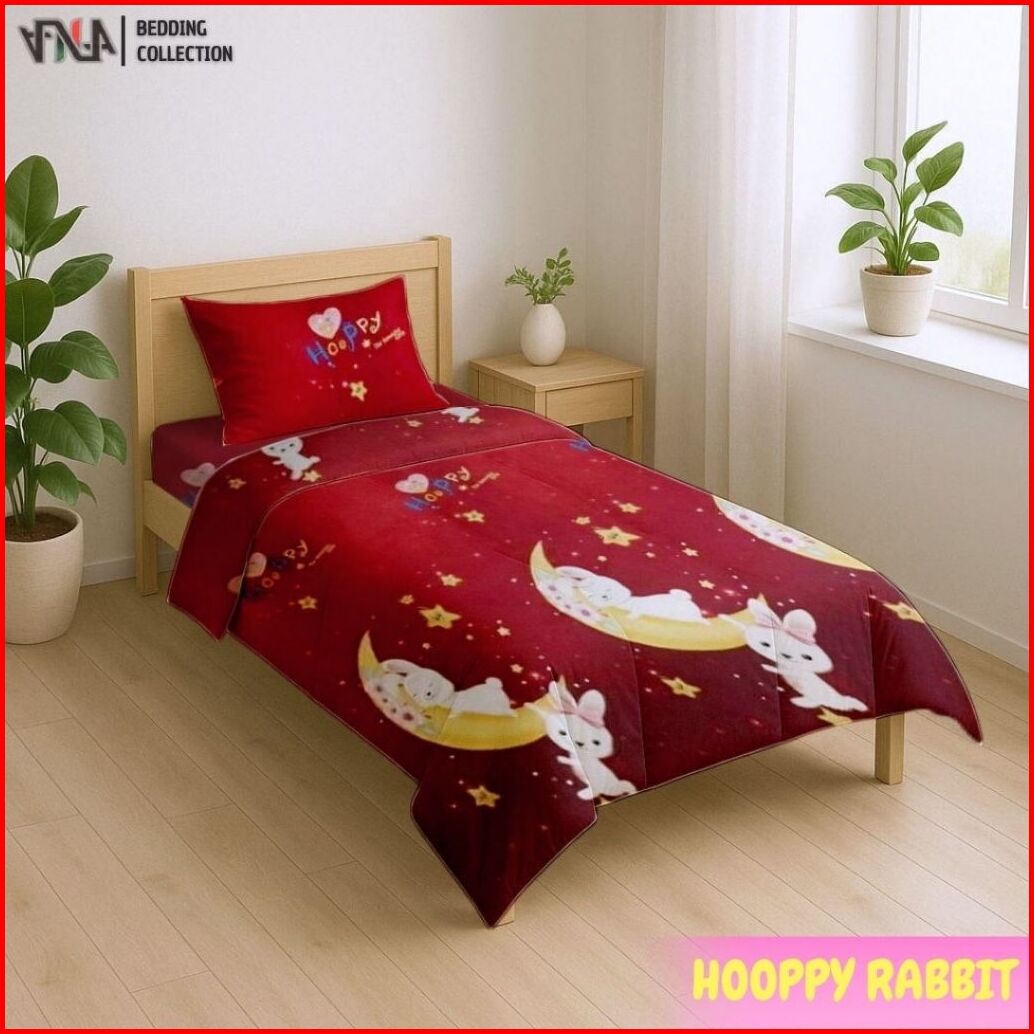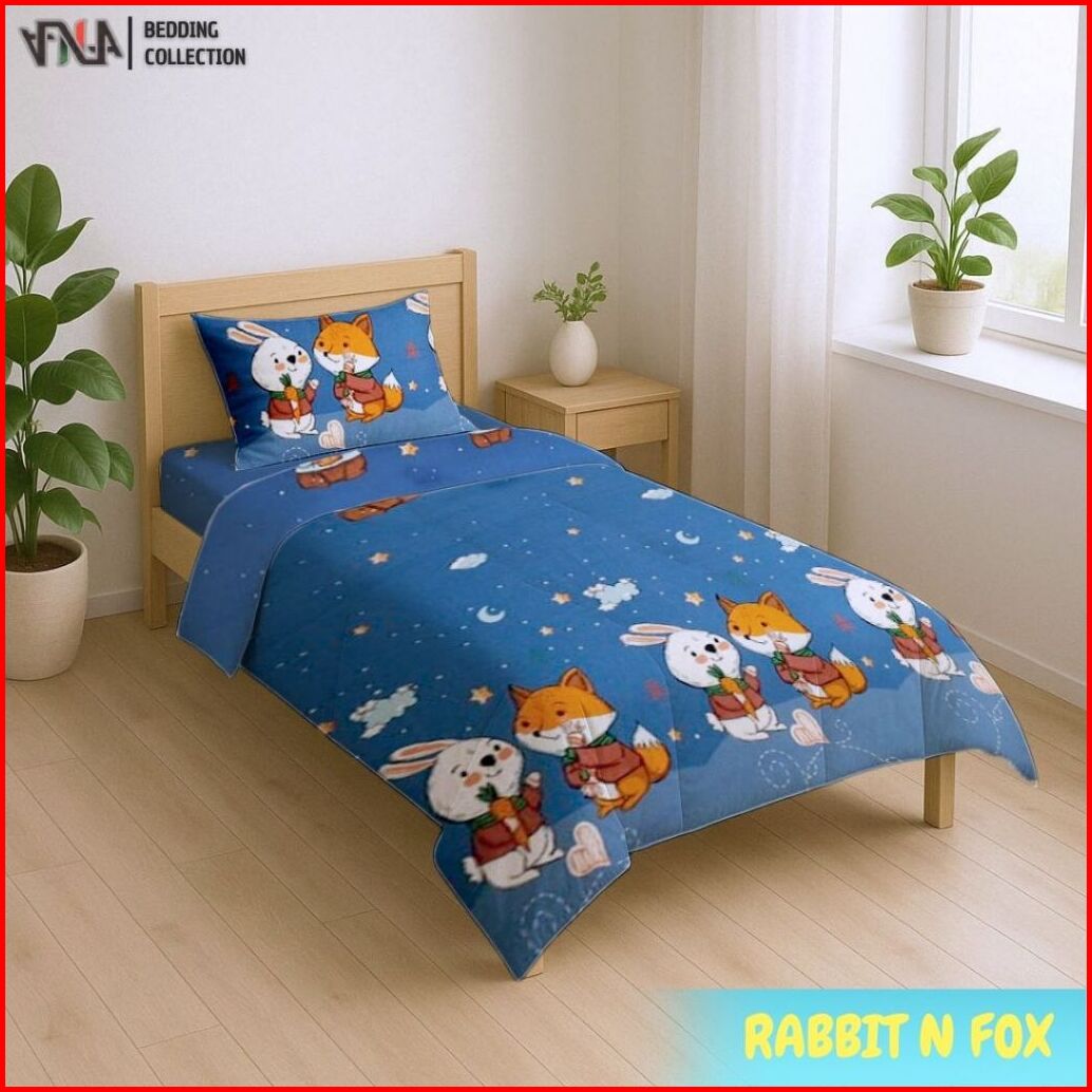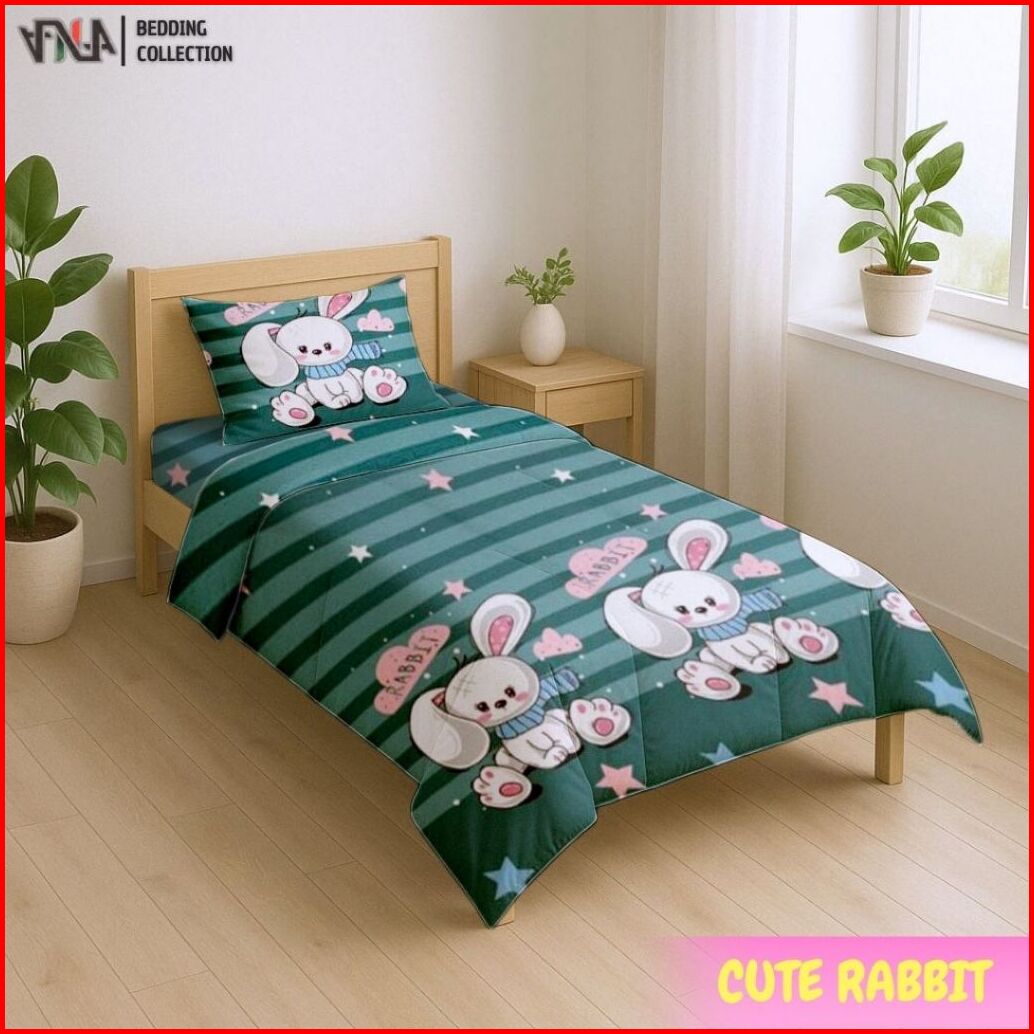 Bedcover Anak Set Sprei Set Motif Gambar Kelinci Rabbit Lucu Bahan Katun Ukuran Single-extra King