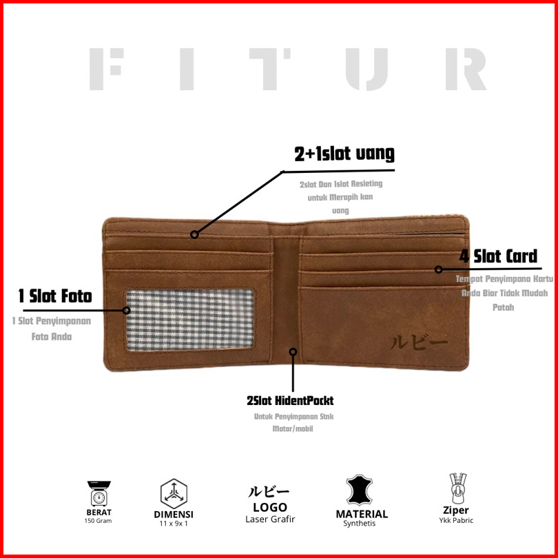 Lubie Dompet Lipat Pria Anti Air Kanvas Poliester Synthetis