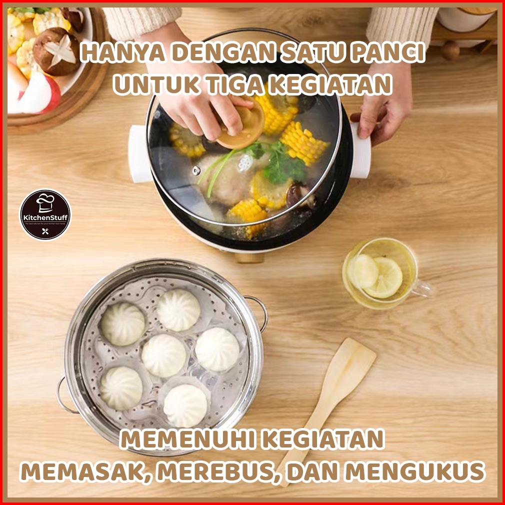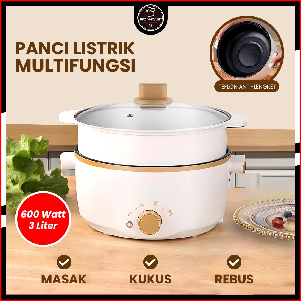 Panci Listrik Serbaguna 3l Anti Lengket Teflon - Multifungsi Dengan Kukusan 600w Kitchen Stuff