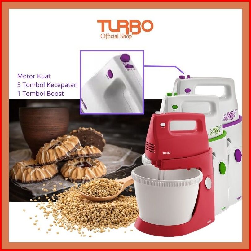 Purple Ungu Turbo Stand Mixer Pengaduk Genggam Dengan Bowl Mangkok Ehm9090 Original
