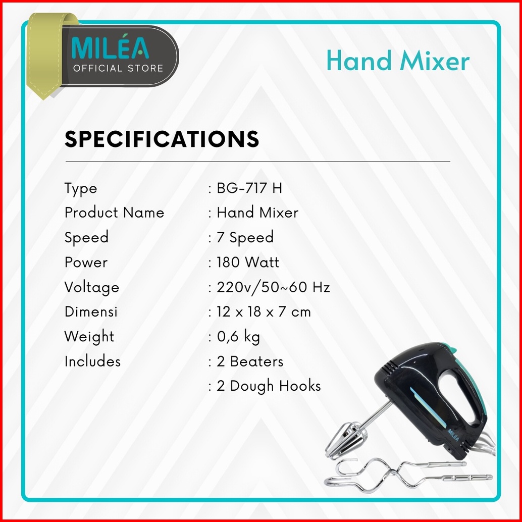 Milea - Hand Mixer Pengaduk Adonan Pengocok Telur Dengan 7 Pilihan Kecepatan Otomatis Bg-717h