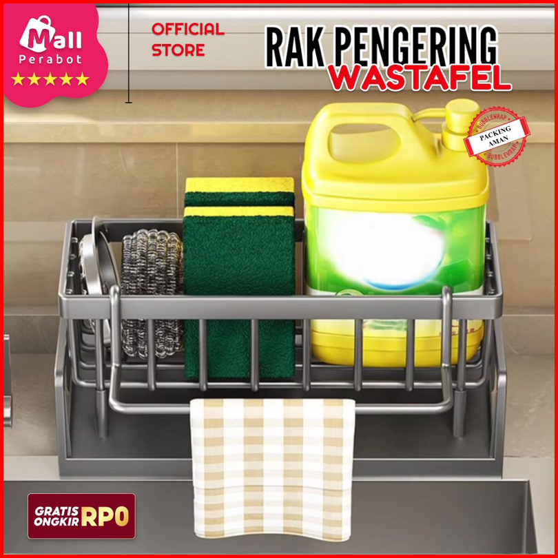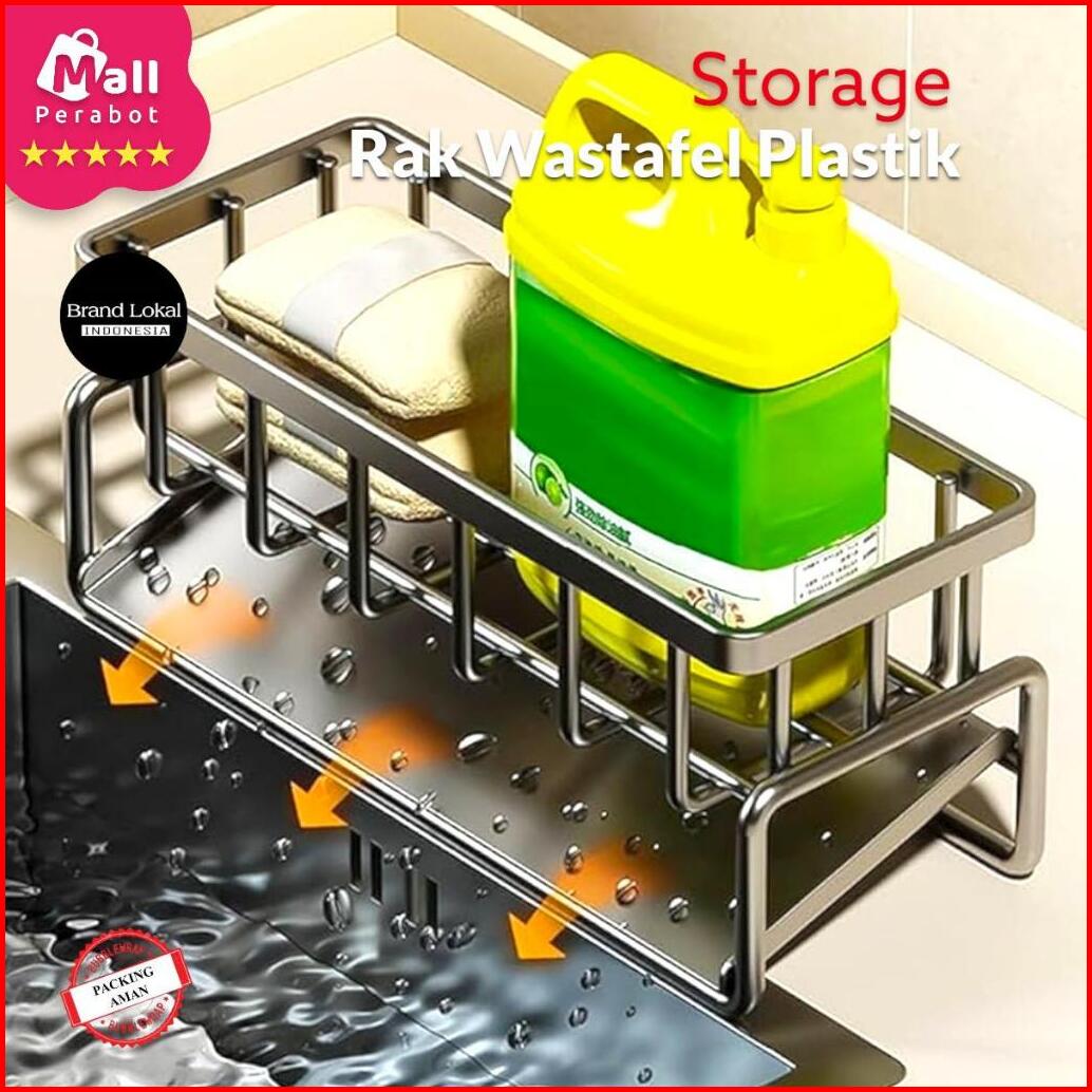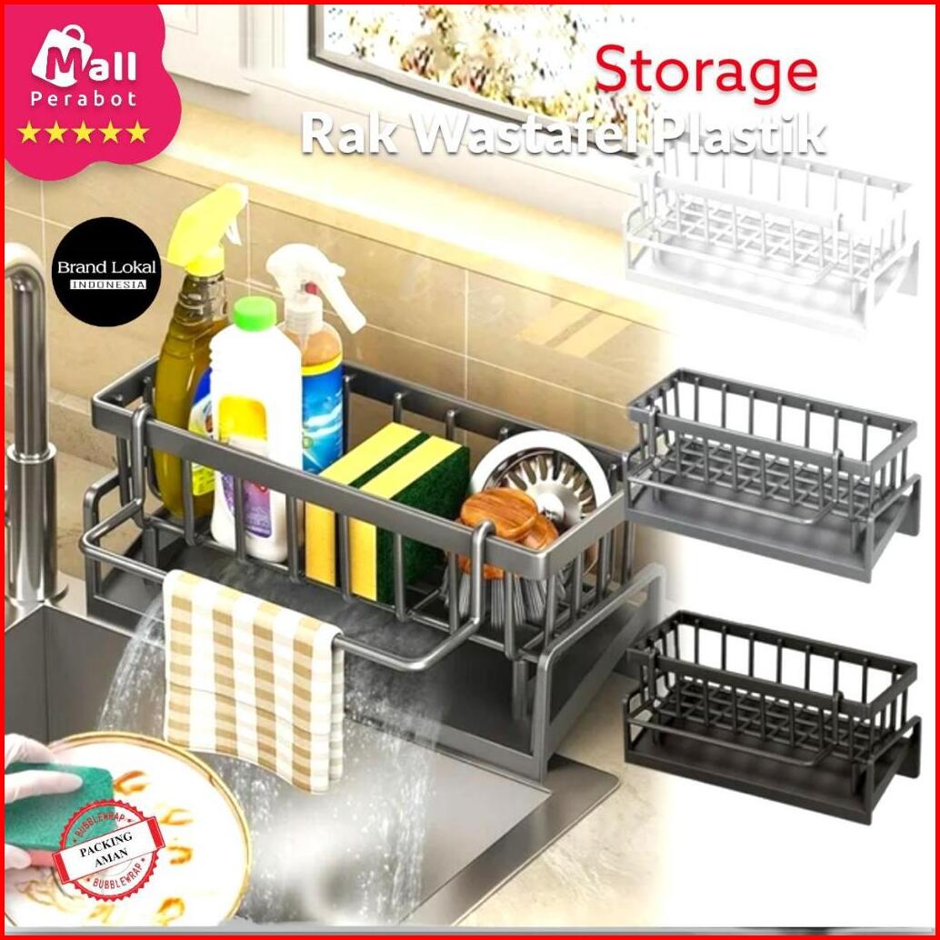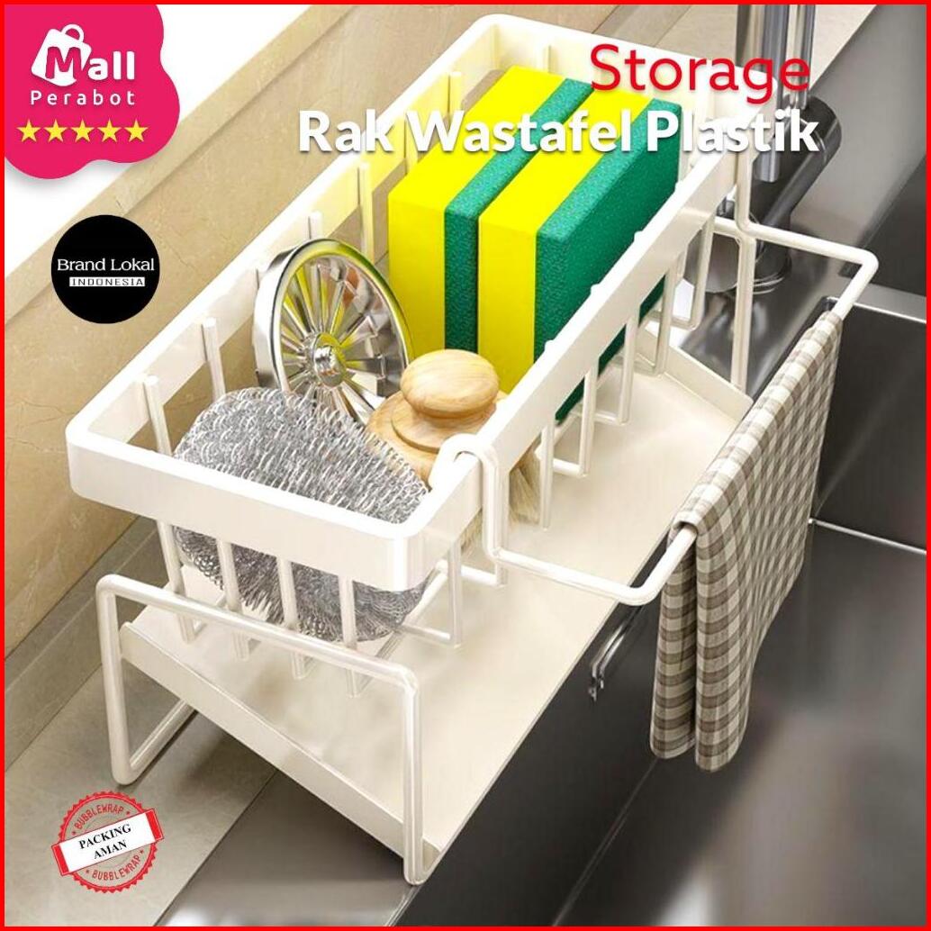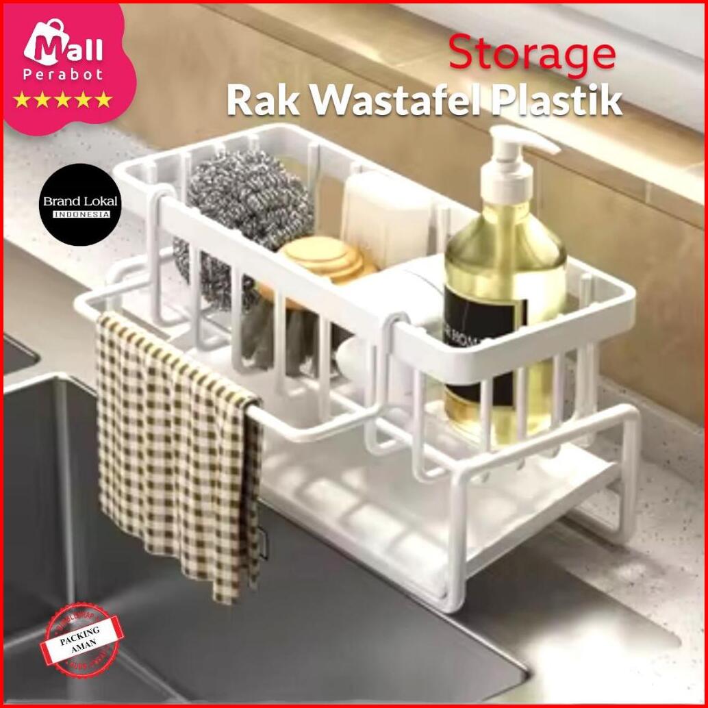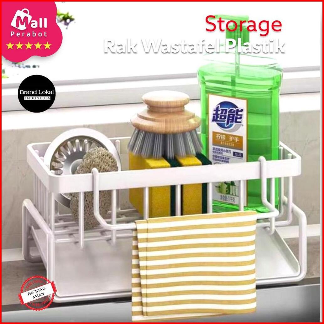 Mall Perabot Lokal Rak Wastafel Spons Sabun Cuci Piring Plastik Multifungsi Pengering Dengan Holder Kain