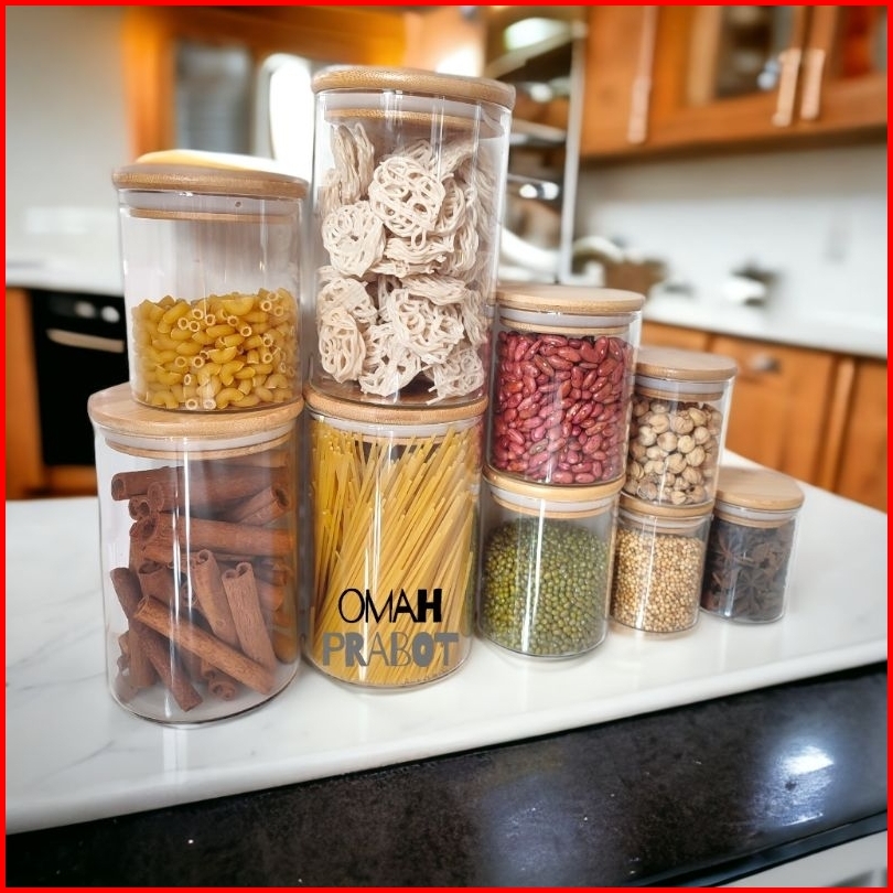 Omah Prabot - Toples Kaca Transparan Tutup Kayu Toples Kaca Toples Bening Toples Transparan Toples Lebaran