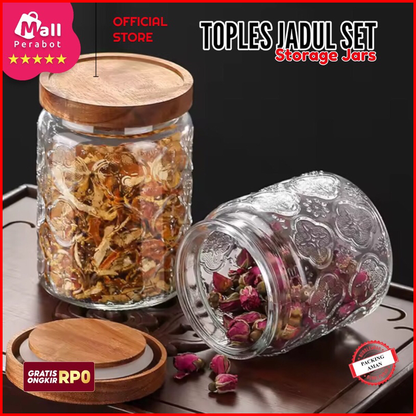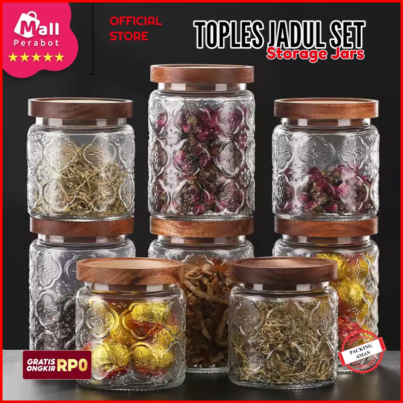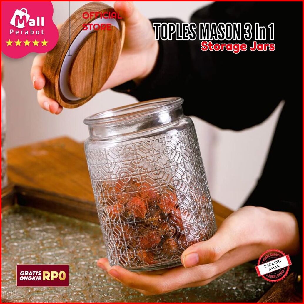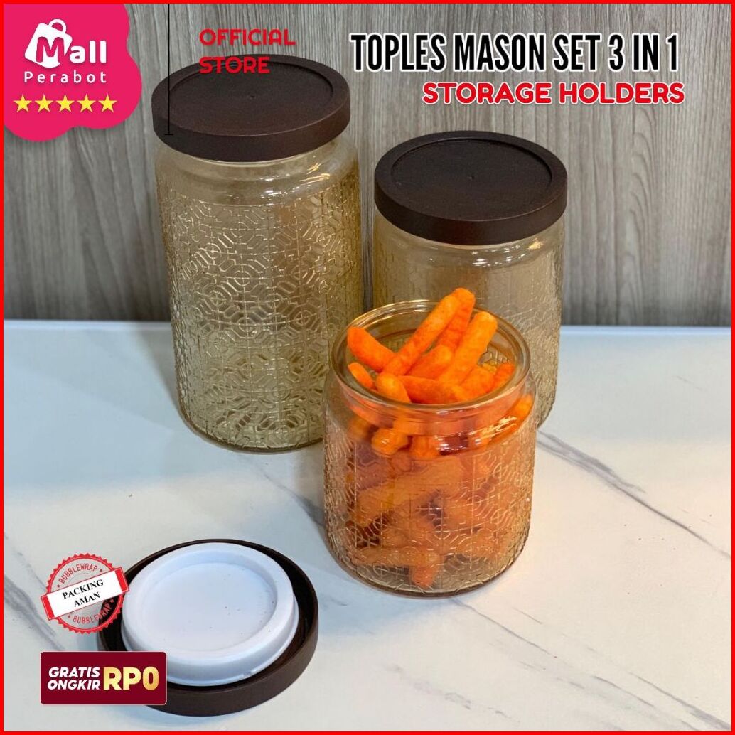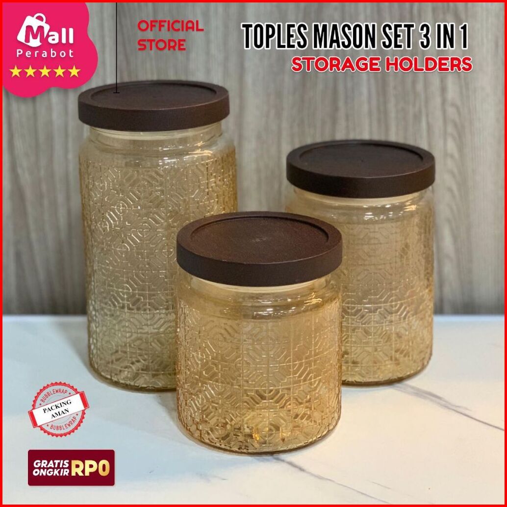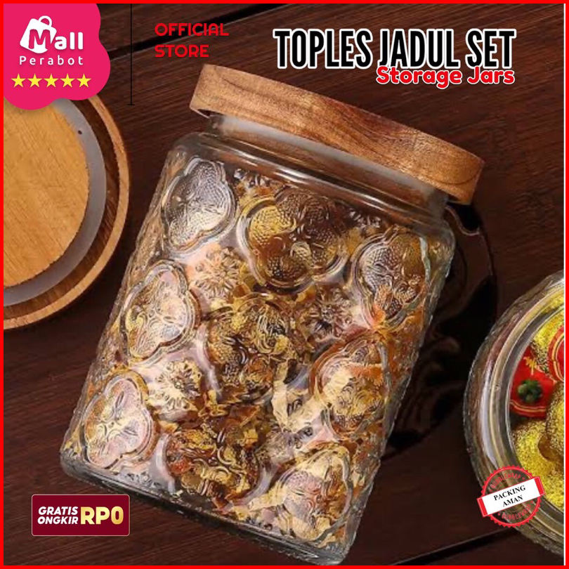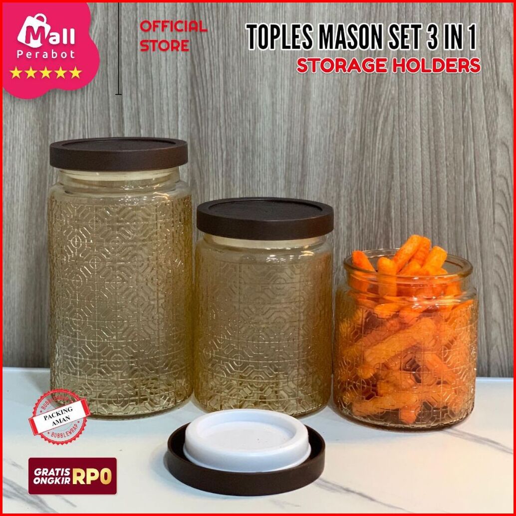 Mall Perabot Toples Kaca Kue Lebaran Kedap Udara Canister Jar Vintage Toples Vacuum Jar 3 In 1