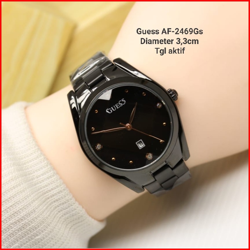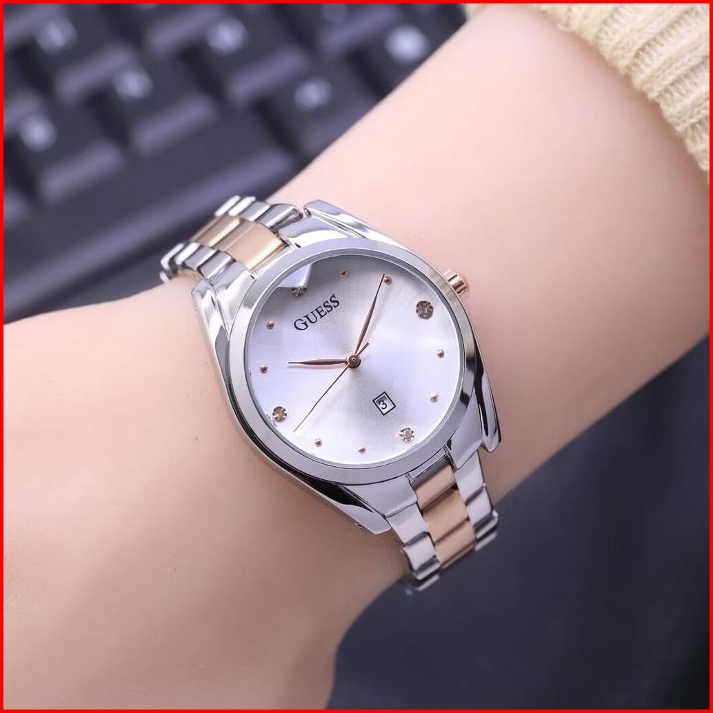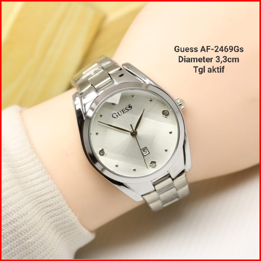 Jam Tangan Wanita Guess Kaca Belimbing Anti Air Tali Rantai Solid Tanggal Aktif Free Box Baterai Free Kalung