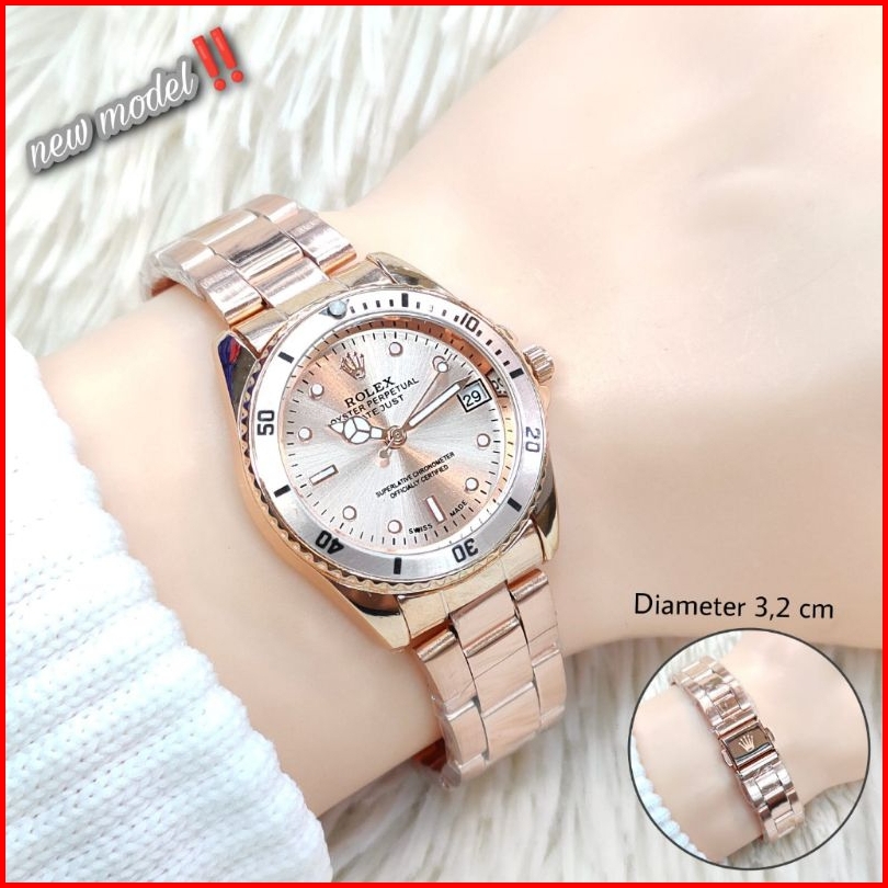 Terbaru Jam Tangan Wanita Rolex R-2177 Rantai Stainless Steel Ring Body Bisa Putar Tanggal Aktif
