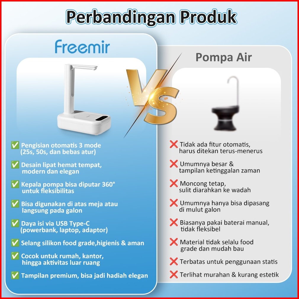 Deals Freemir Pompa Galon Lipat Electric Dispenser Air Minum Meja Detskop Water Pump