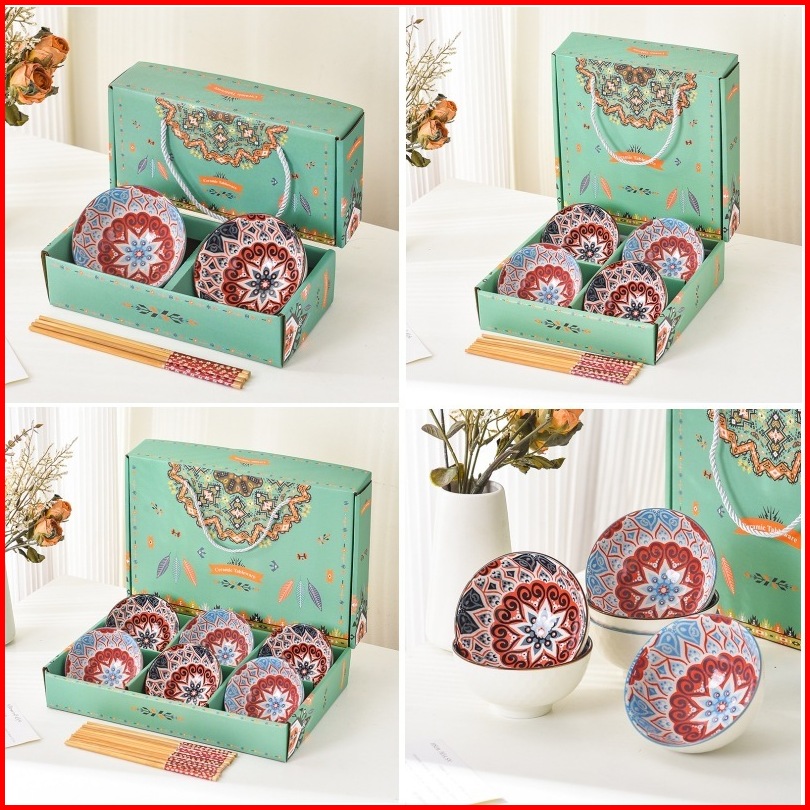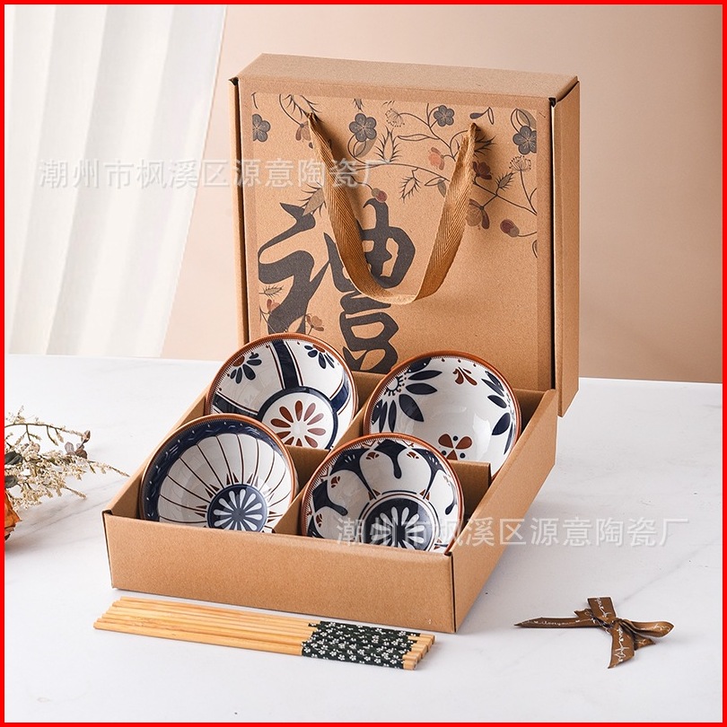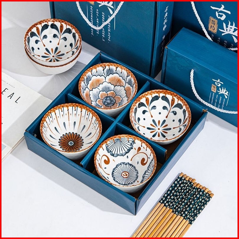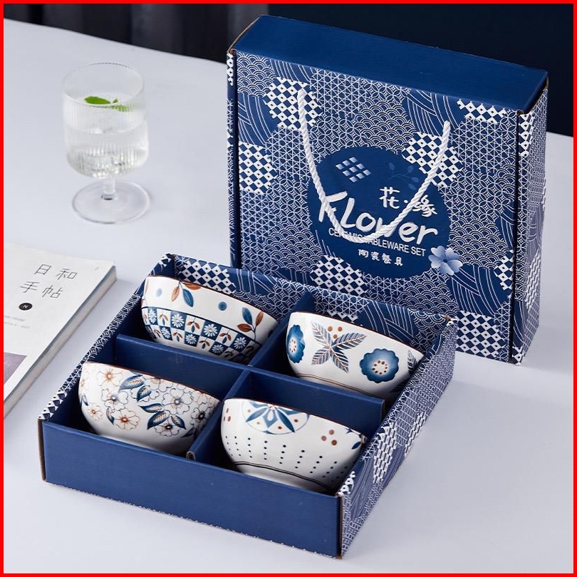 Mangkok Jepang Set Keramik 5 Inci Wedding Hampers Murah Gift Box Isi 4 Pcs