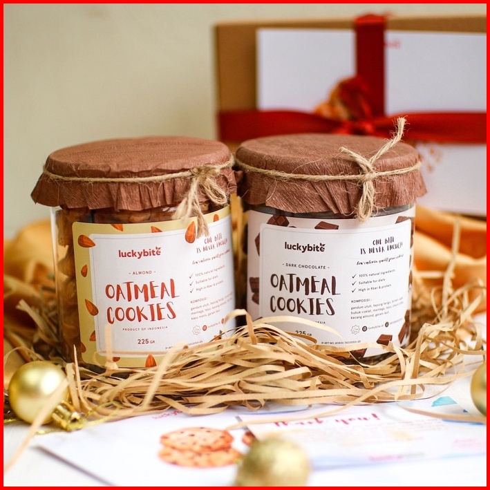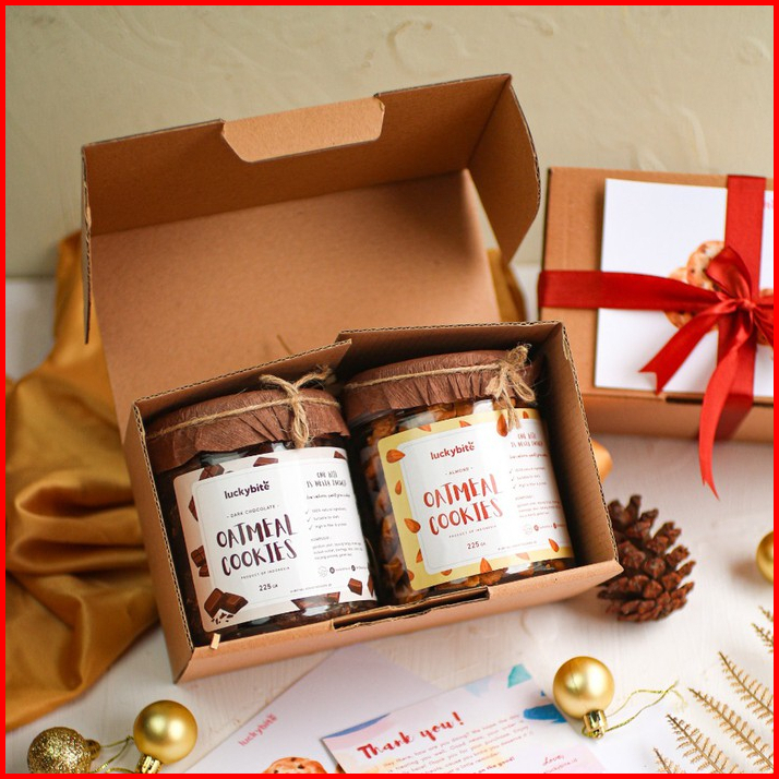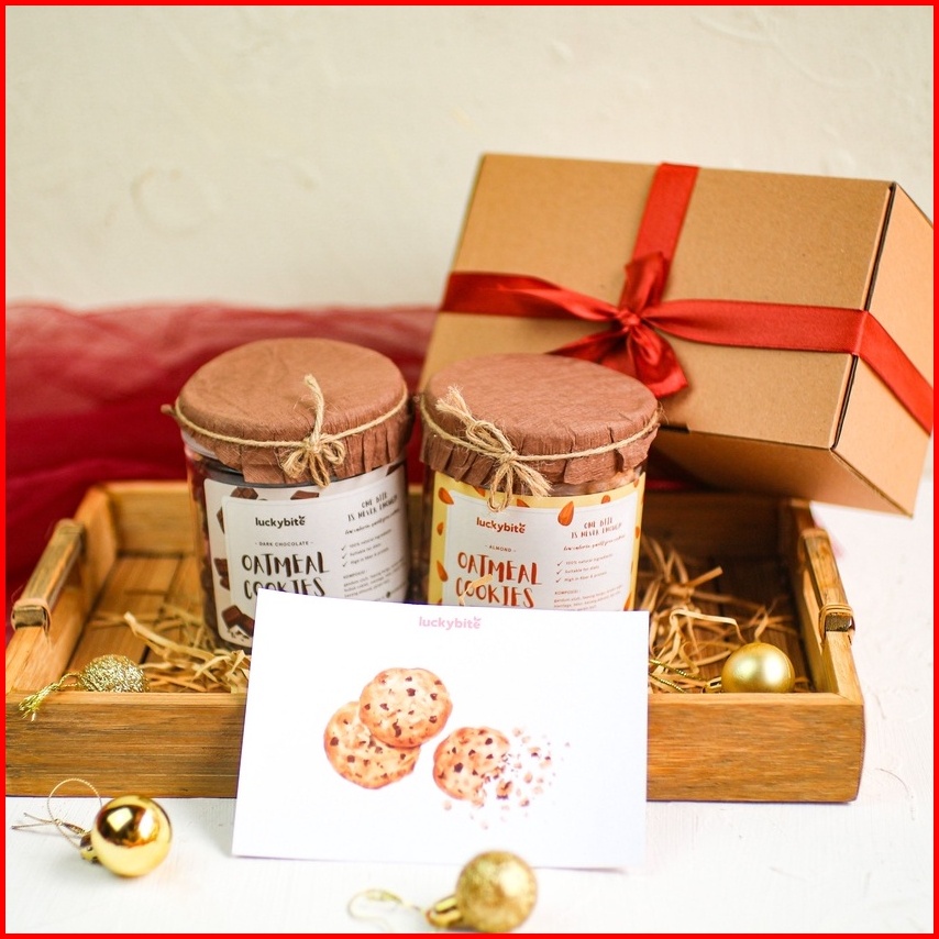 Hampers Gift Box Kado - Oatmeal Cookies 2 Jar Free Greeting Card Pita Bubble Wrap Luckybite