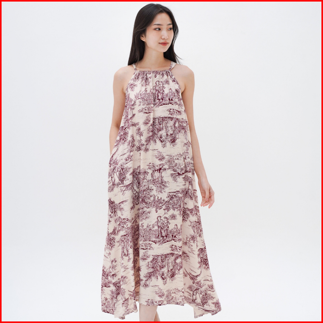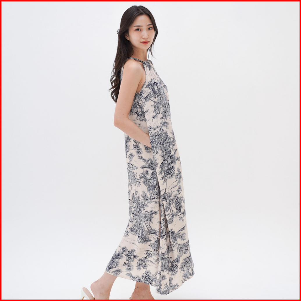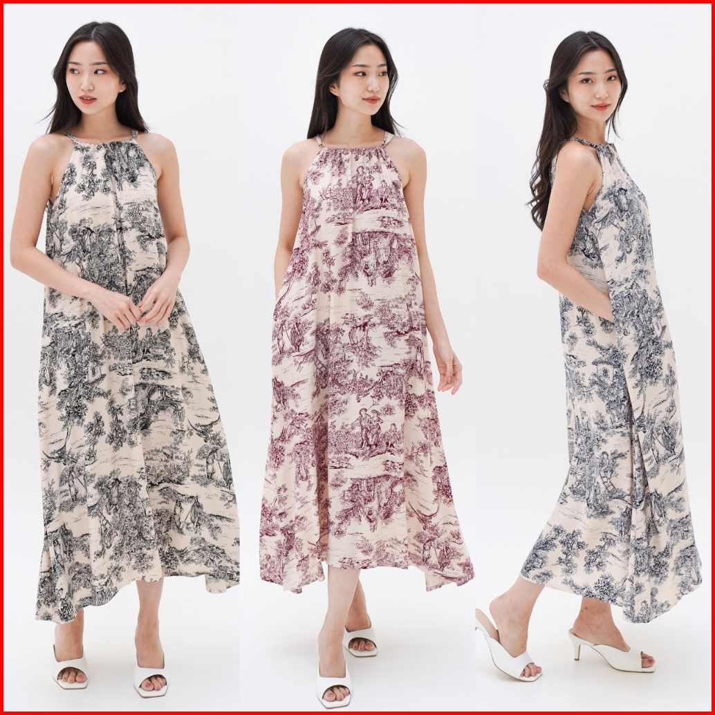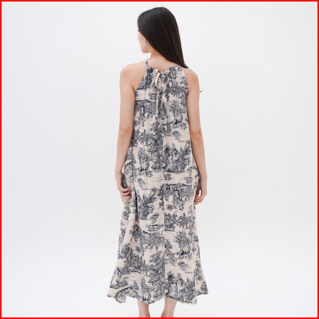 Long Dress Wanita Sleeveless Tanpa Lengan Motif Kekinian Bahan Rayon