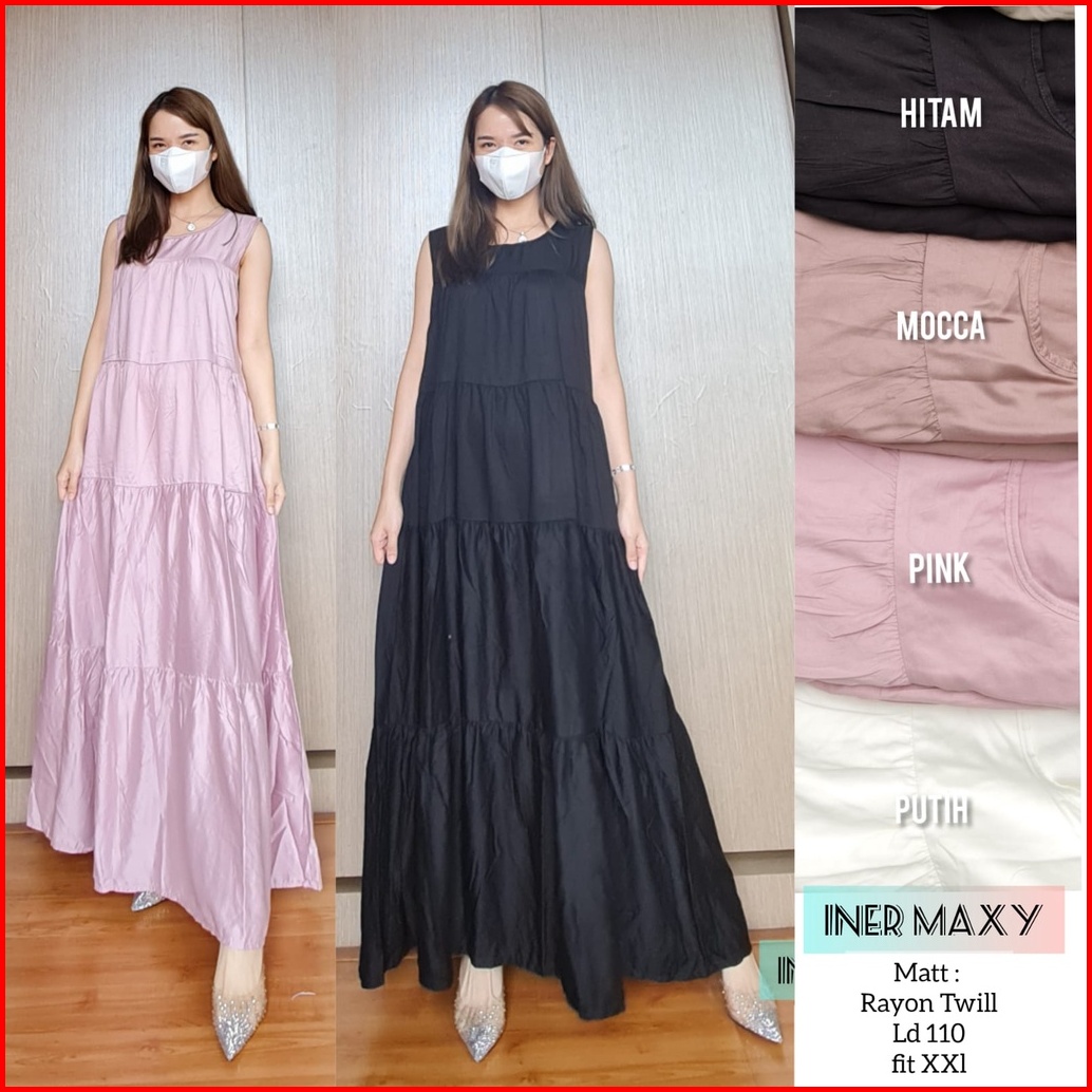 Parisdivarious Iner Dress Maxy Bahan Rayon Twill Premium Ld 110 Cm Pj 130 Cm Fit Xxl
