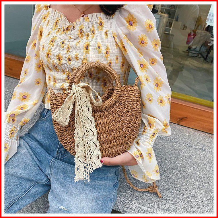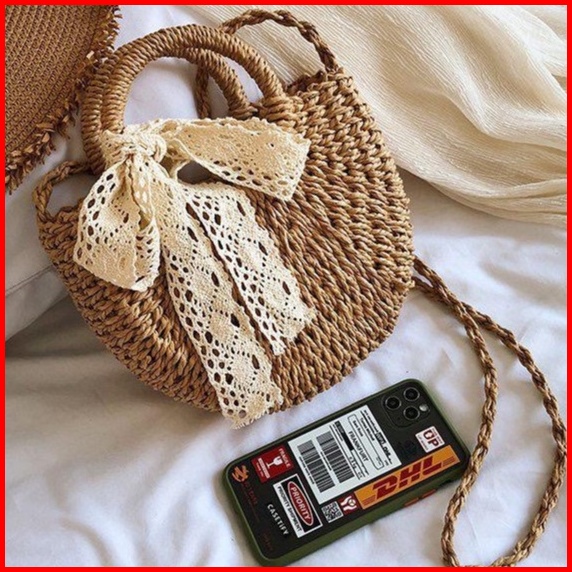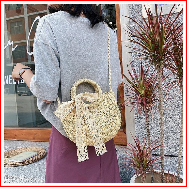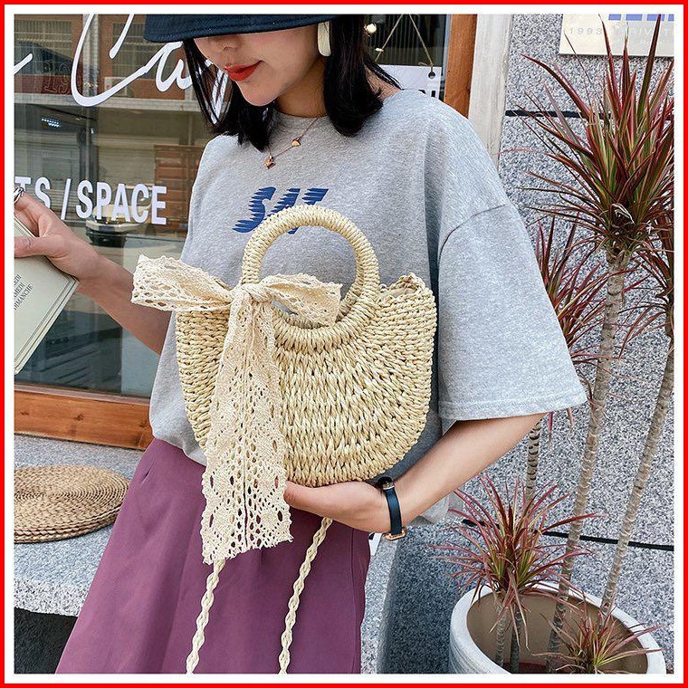 Bj15415 - Beige Khaki - Tas Rajut Jaring Free Syal Scarf Tas Pantai Wanita Fashion Import Modis Elegan Termurah Terlaris