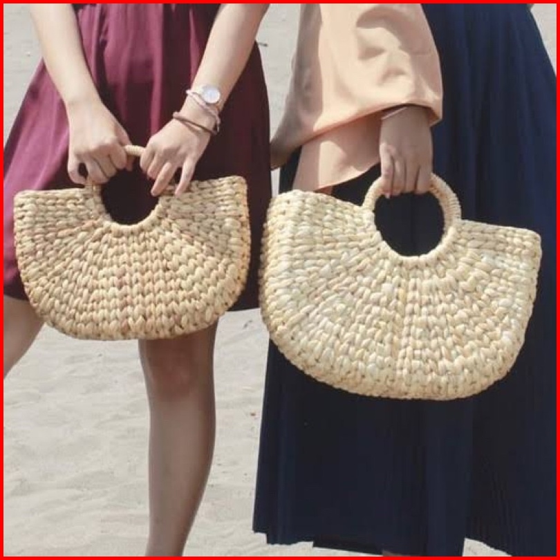 Tas Enceng Gondok Etnik Bali Kiso Pernis Putih