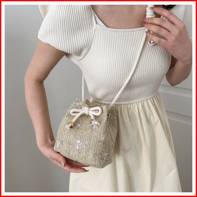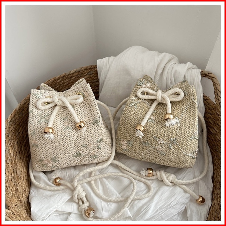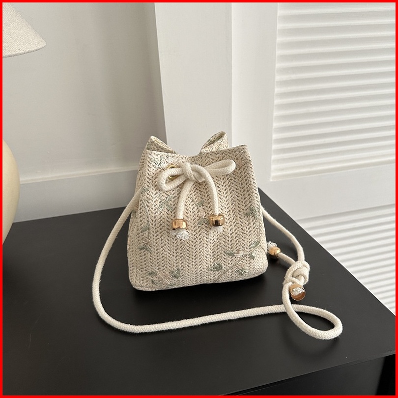 Bao117 Tas Selempang Bahu Wanita Tren Tas Anyaman Renda Rotan Keranjang Air Tas Keranjang Bahu