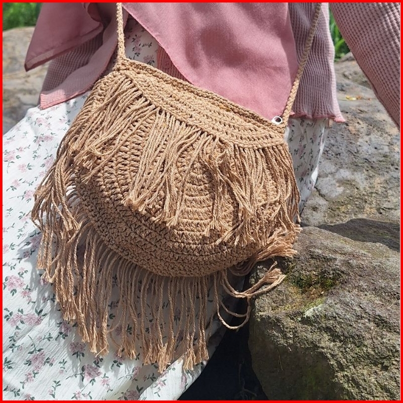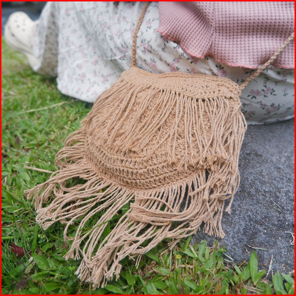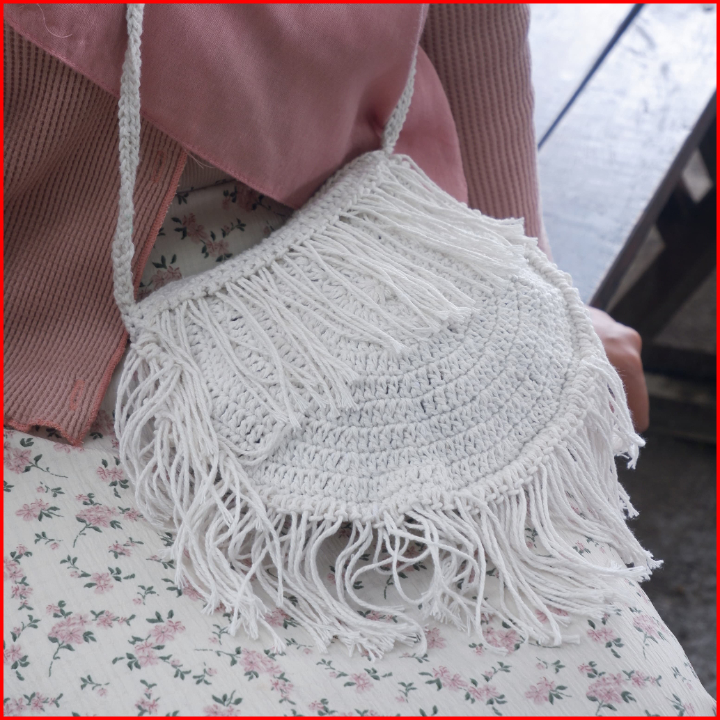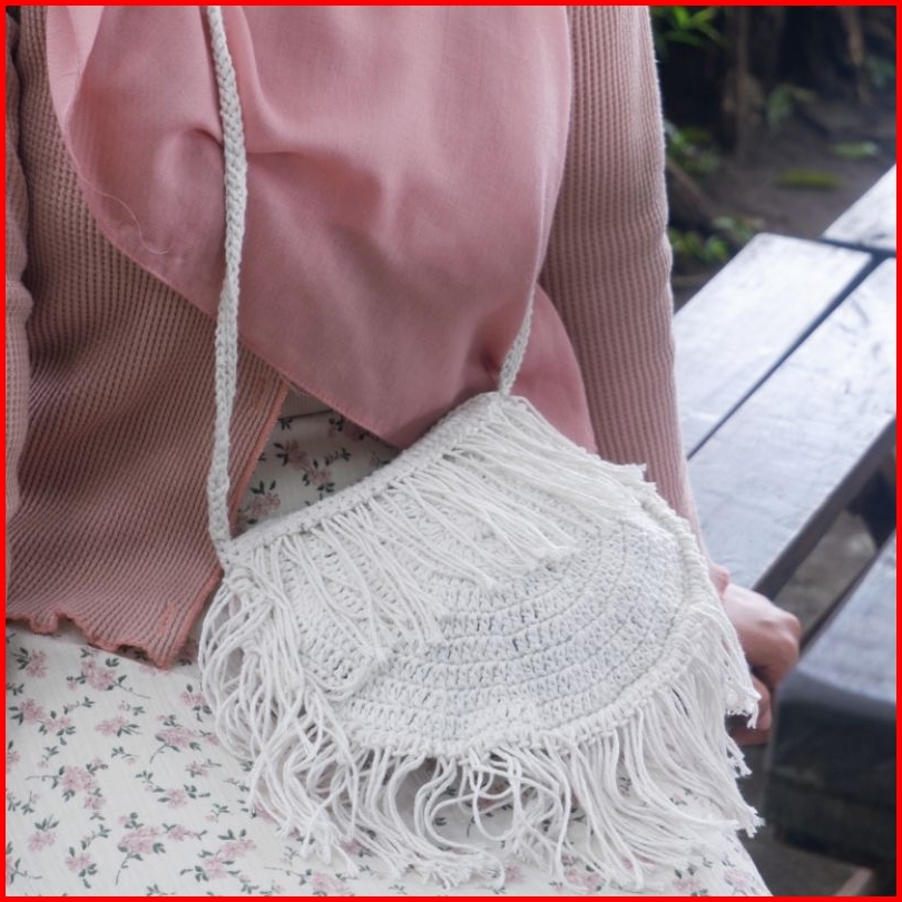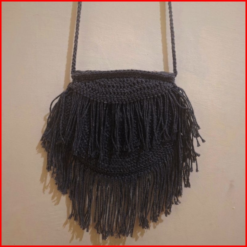 Tas Rajut Rumbai Bali Macrame - Sling Bag Rawis Etnik Handmade Tas Selempang Bohemian By Rajutgalawi