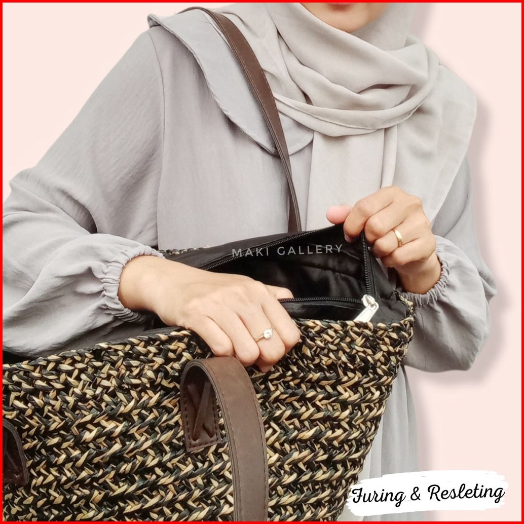 Tas Anyaman Etnik Wanita Khas Bali Bahan Mendong Motif Lurik Tote Bag Tas Bahu By Maki Gallery
