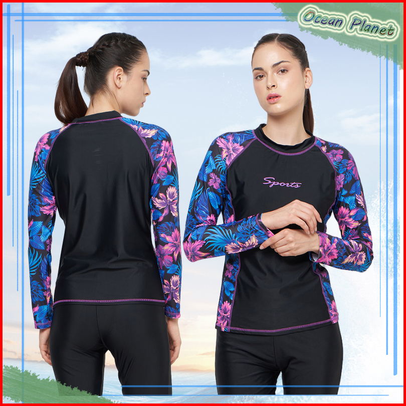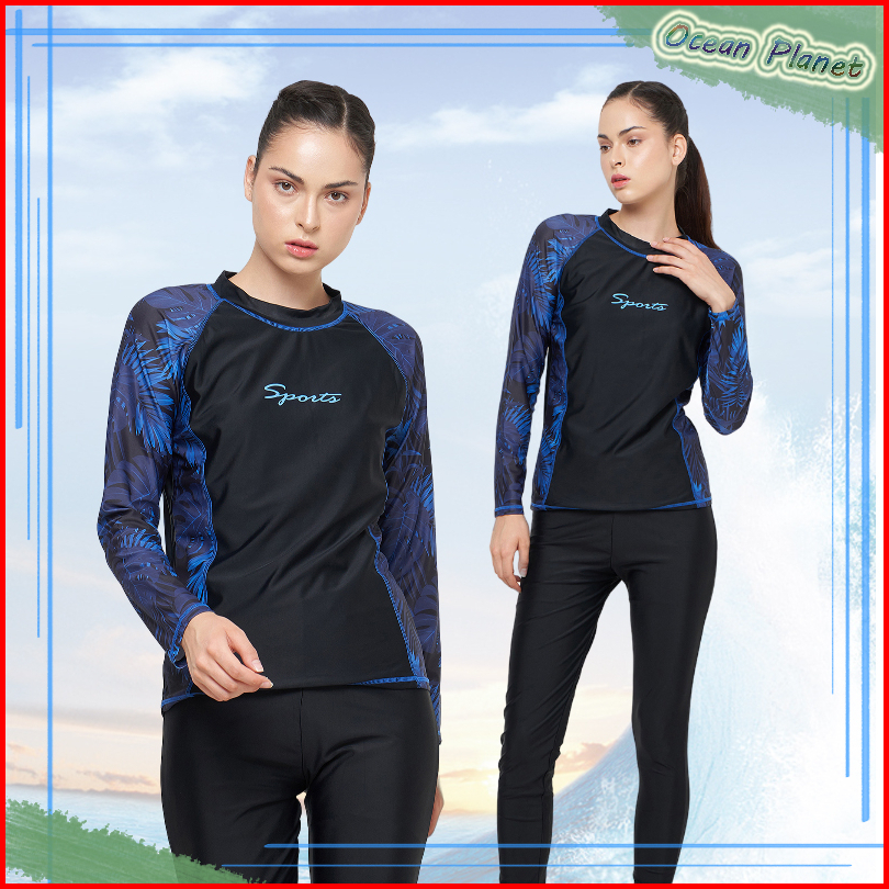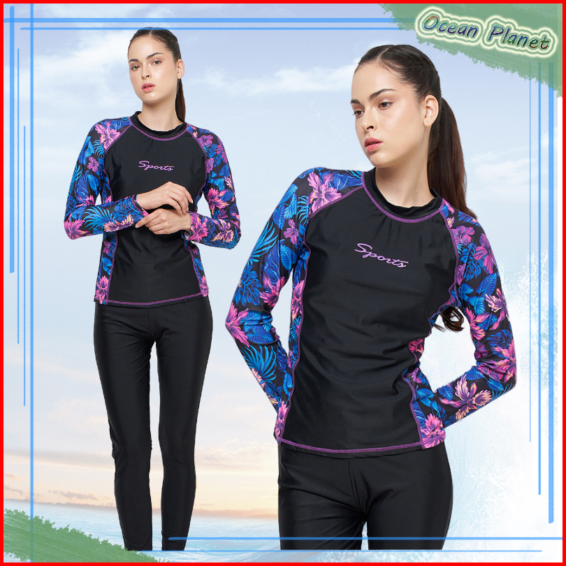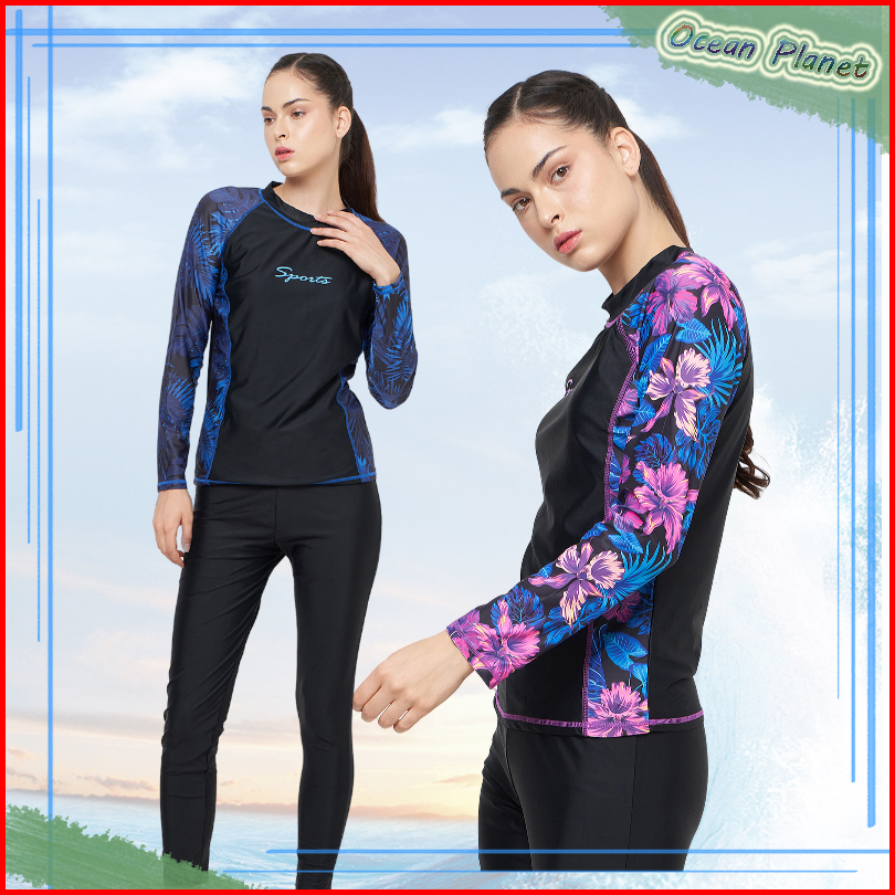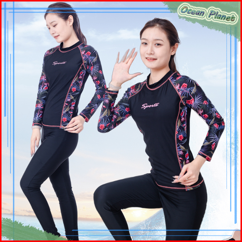 31602 Dua Piece Fashion Dewasa Baju Renang Wanita Baju Renang Lengan Panjang Pakaian Selam