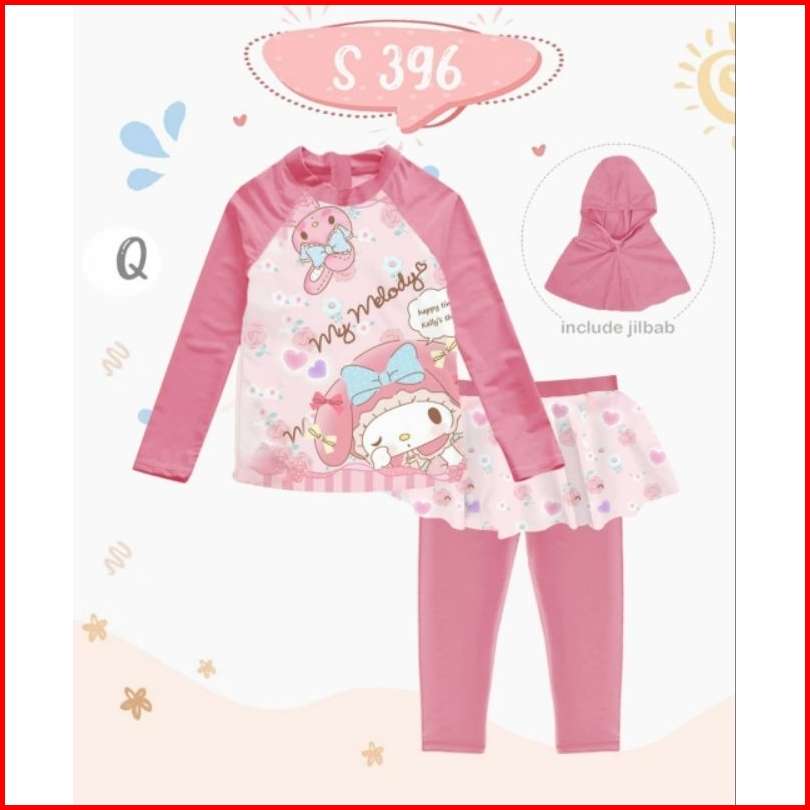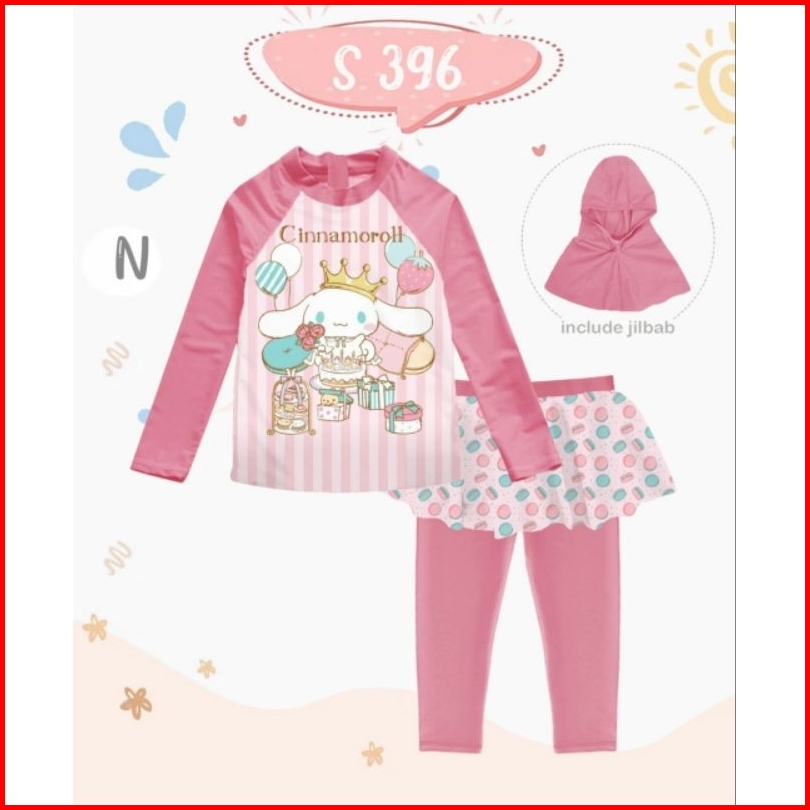 Baju Renang Anak Hijab Kuromi Cinnamoroll Sanrio Cinamoroll Balita Abg Teen Remaja Tk Sd Smp 2 3 4 5 6 7 8 9 10 11 12 13