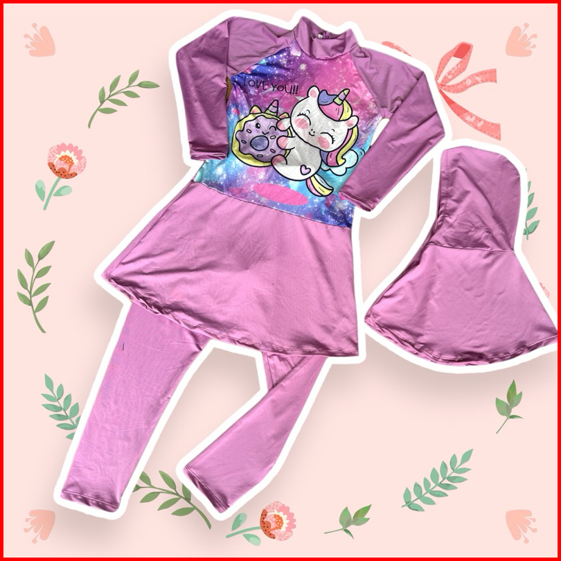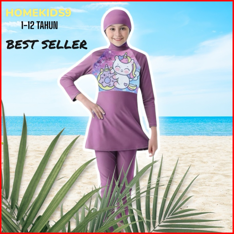Homekids9 Baju Renang Anak Cewek Muslim Baju Renang Anak Perempuan Hijab Baju Renang Anak Cewek Muslimah 1-12 Tahun Unic