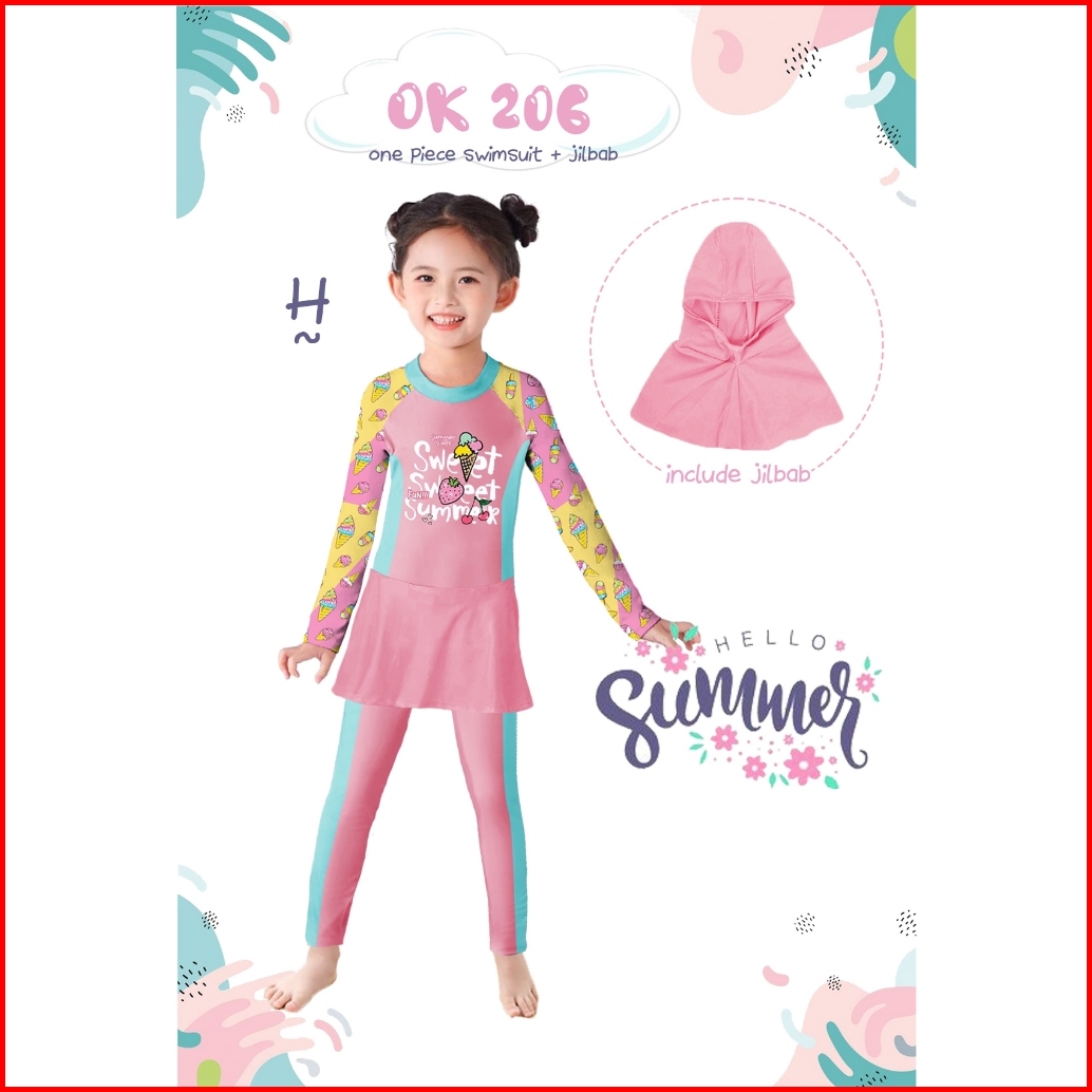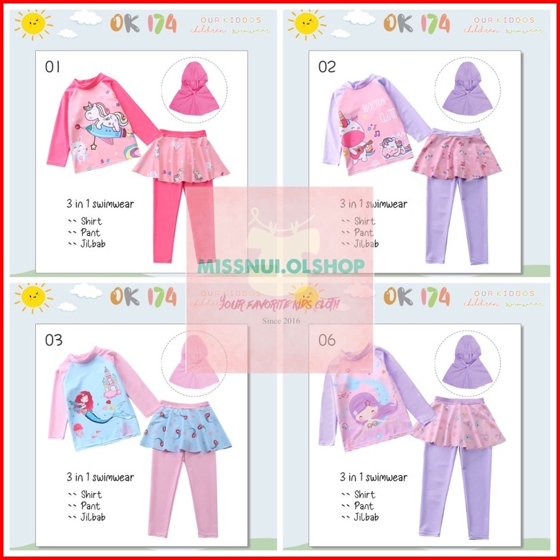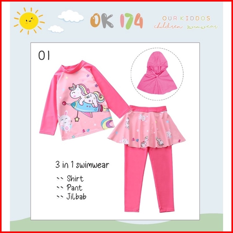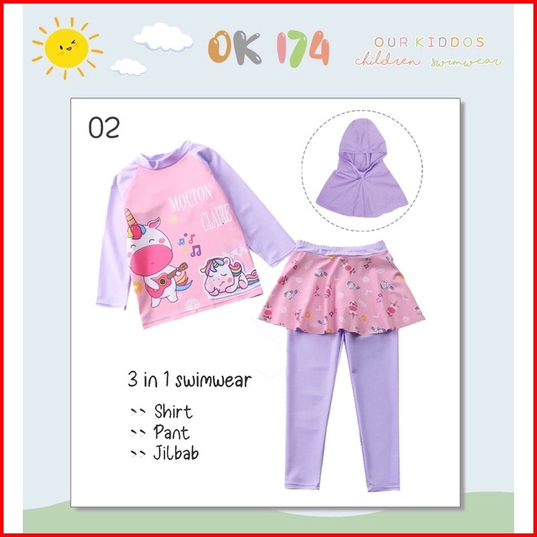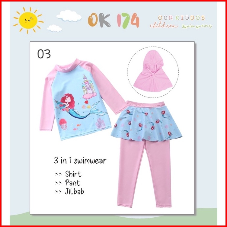 Ready Baju Renang Anak Perempuan Jilbab Import Our Kiddos Ok 174 Dan Ok 206 - F H I Jumpsuit