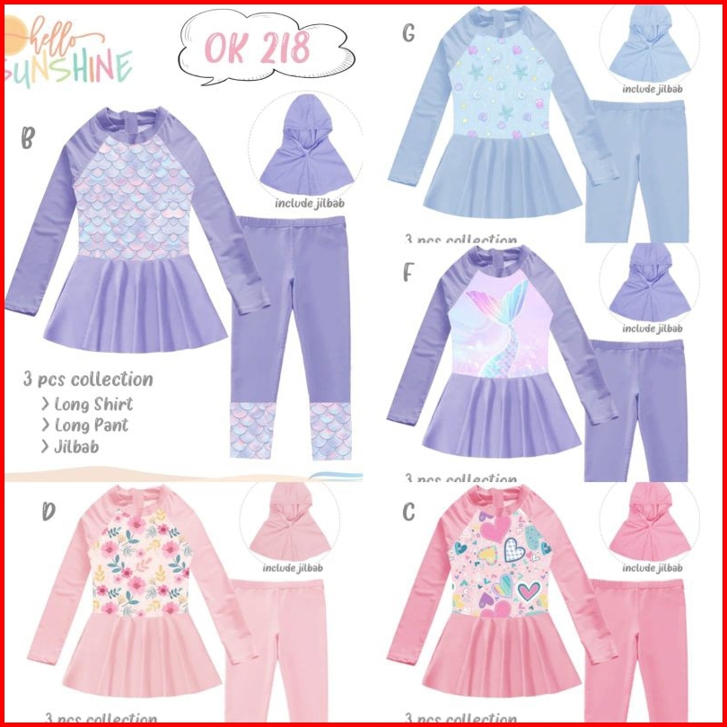 Ok218 Baju Renang Anak Muslim Baju Renang Anak Hijab Baju Renang Muslimah Baju Renang Anak Muslim Mermaid