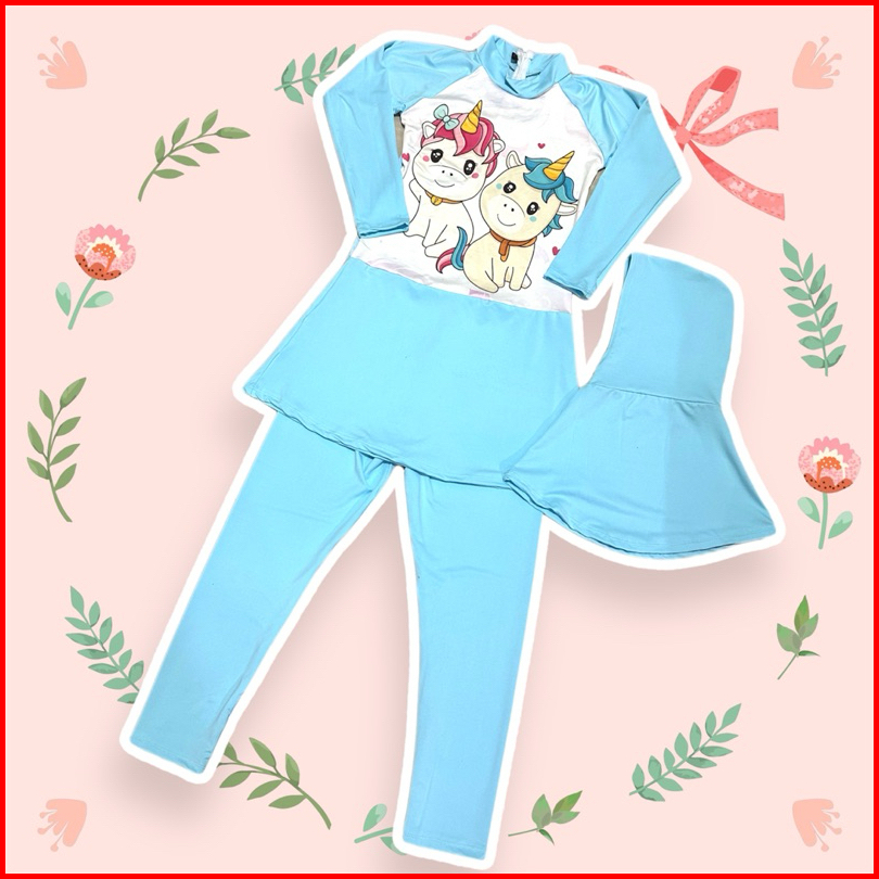 Homekids9 Baju Renang Anak Cewek Muslim Baju Renang Anak Perempuan Hijab Baju Renang Anak Cewek Muslimah 1-12 Tahun Unic