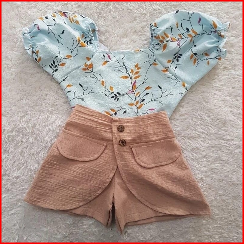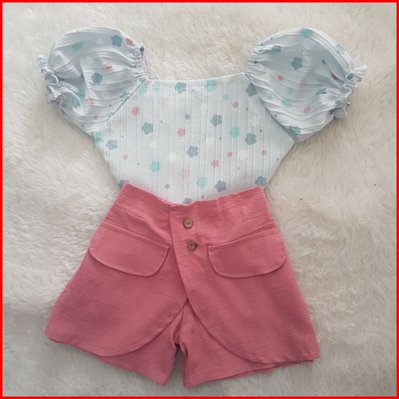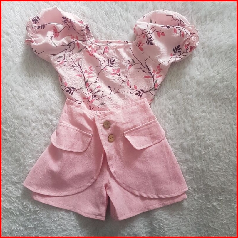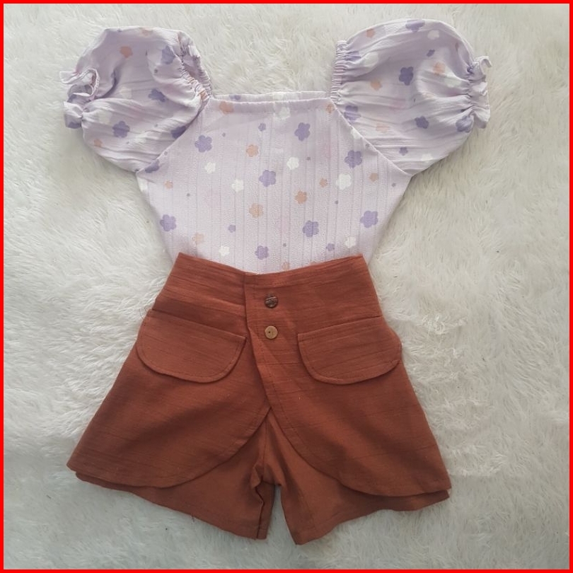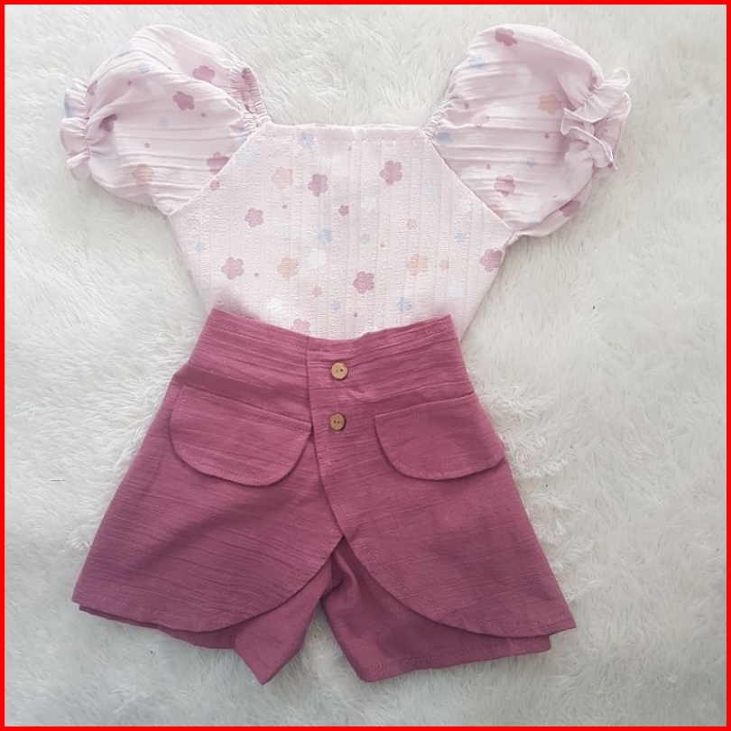 Setelan Anak Perempuan Bunga Brenda Skort Set Fashion Anak