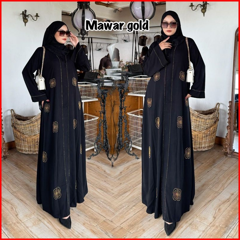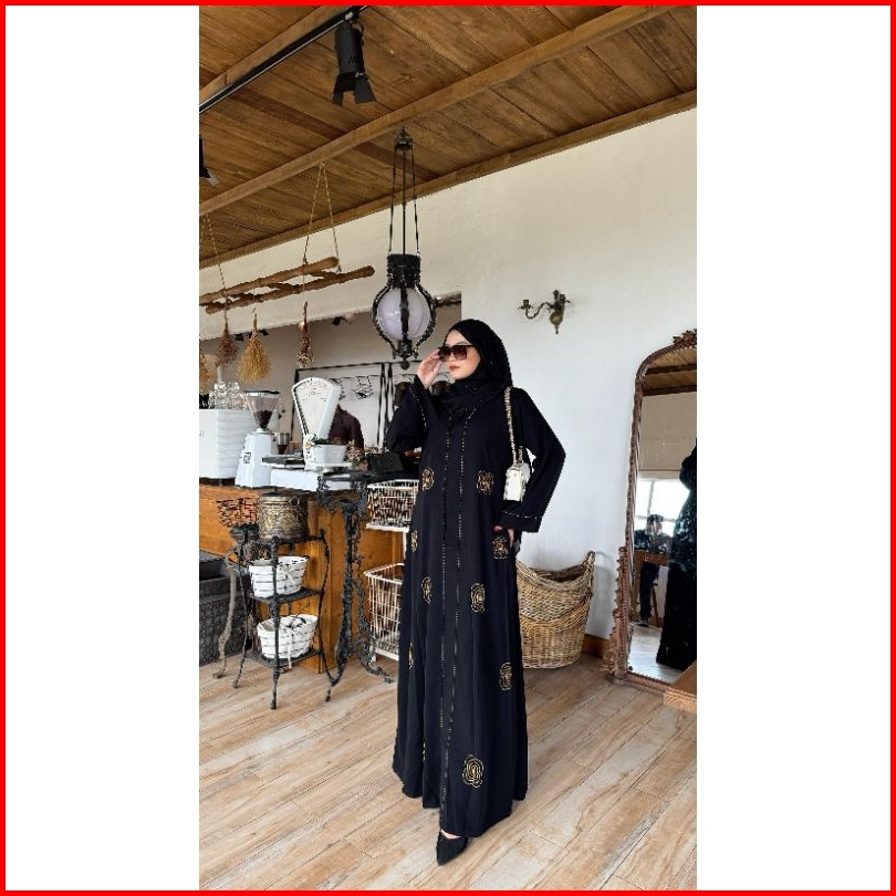 Abaya Hitam Gamis Wanita Turkey Muslim Murah Terbaru Dubai Mawar Mom And Kids Turki Dress Umroh