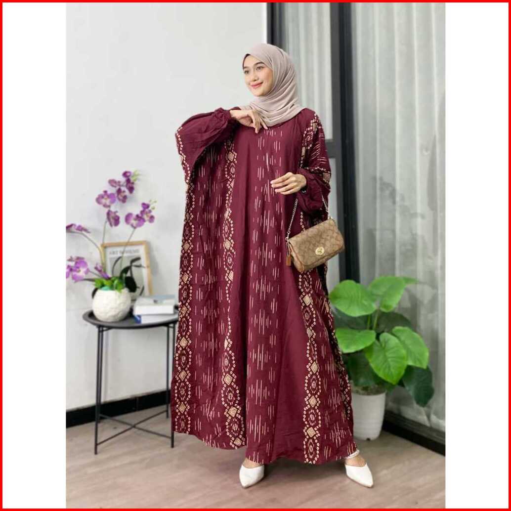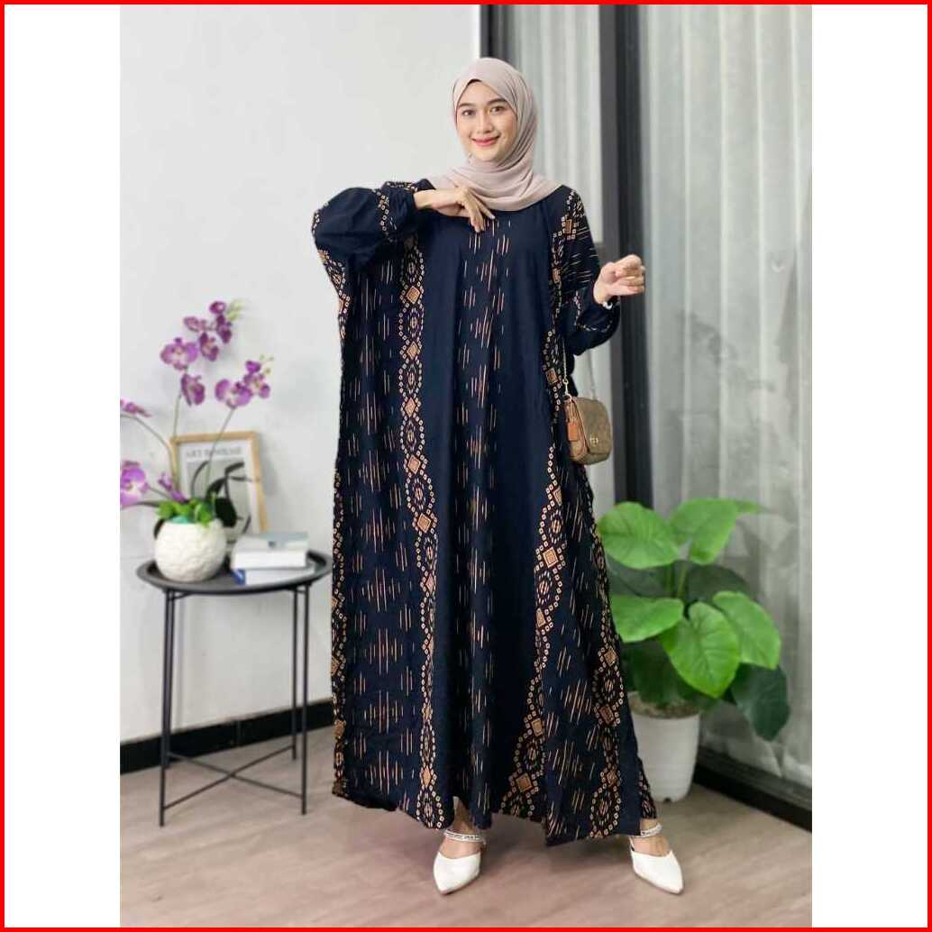 Gamis Kaftan Batik Rayon Premium Jumbo Terbaru Motif Lidi Abaya Long Dress Wanita Busui Kekinian