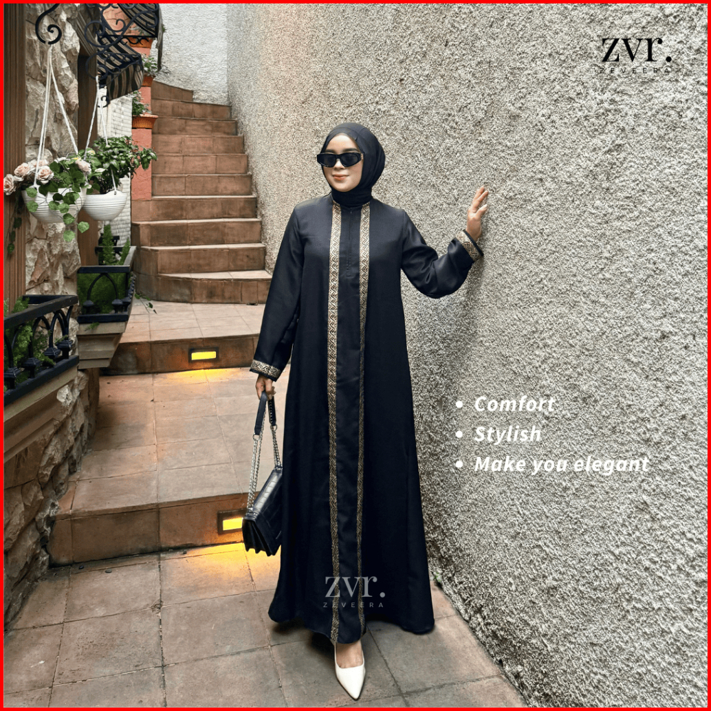 Zeveera Medina Abaya Black All Series Dress Gamis Syari Umroh Shakila Premium