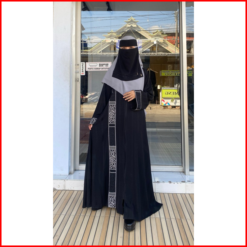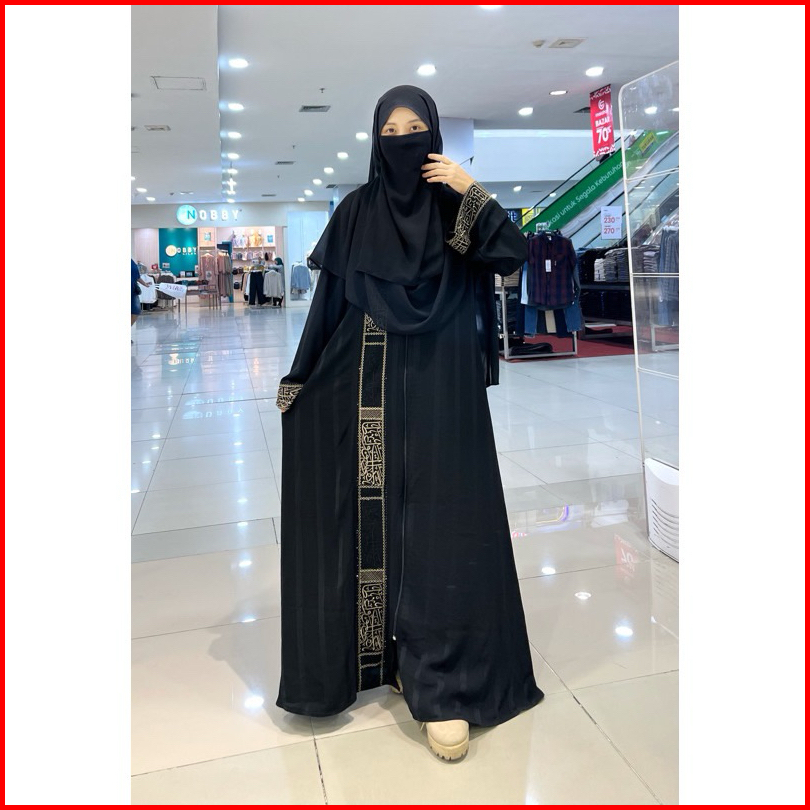 Abaya Reina 01 Kaligrafi Motif Abaya Dubai Viral Hitam Motif Kaligrafi Arab Abaya Farasya Abaya Hitam Temboro
