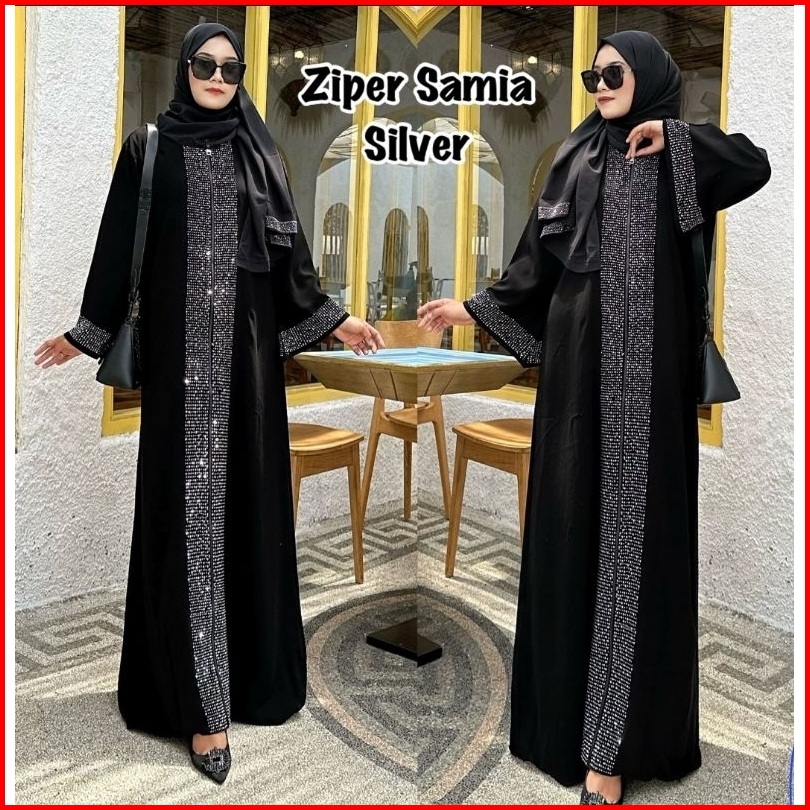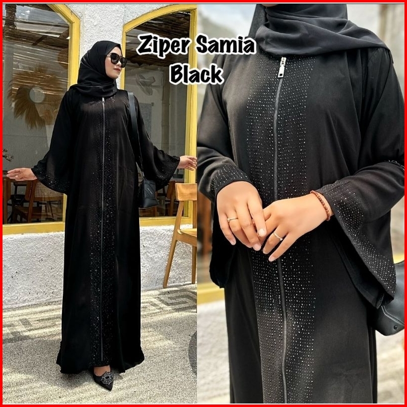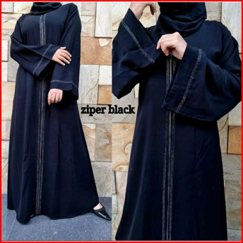 Abaya Arabia Ziper Black Ziper Samiai Mix List Full Swaroski And Jettblack Super