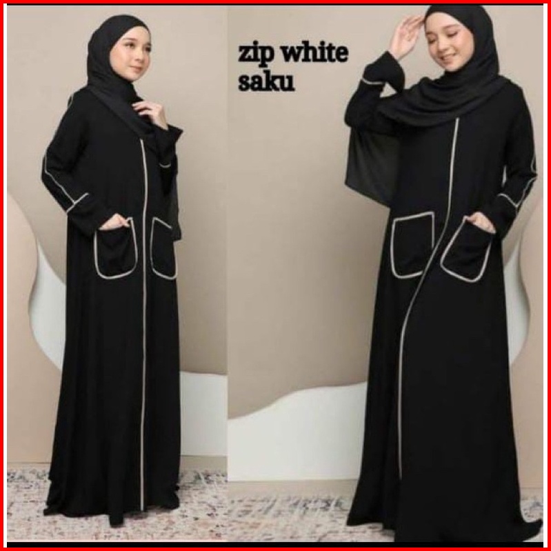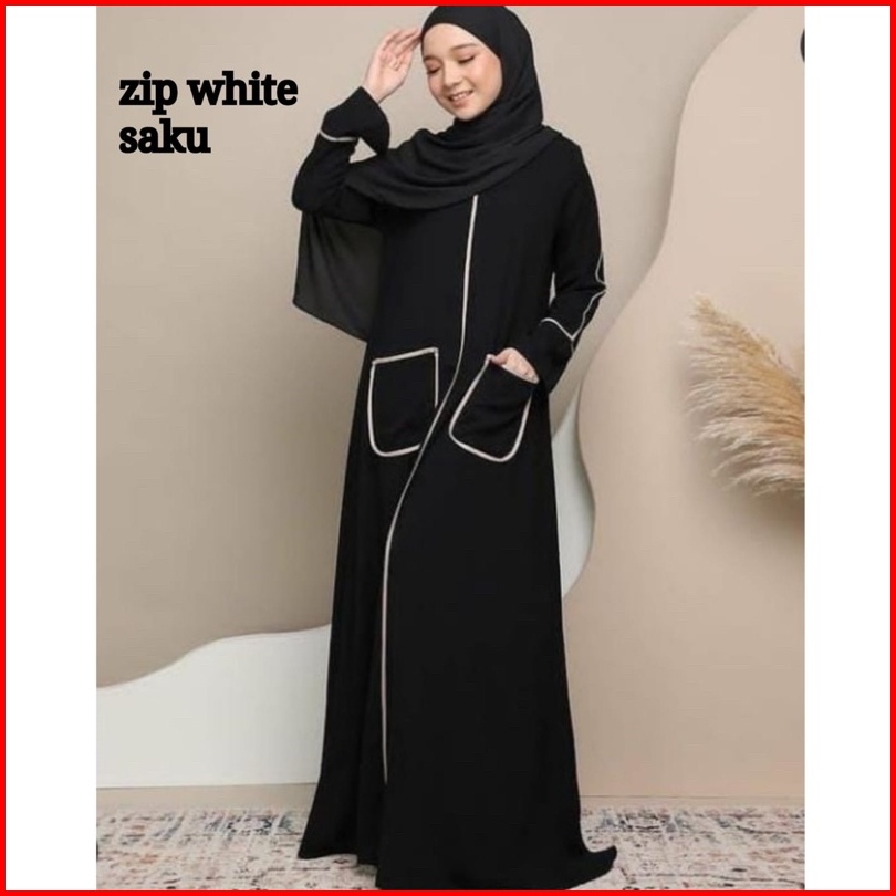 Abaya Hitam Basic Pesta Zephy Dubai Arab Saudi Hindi Turkey Gamis Remaja Zip White Saku