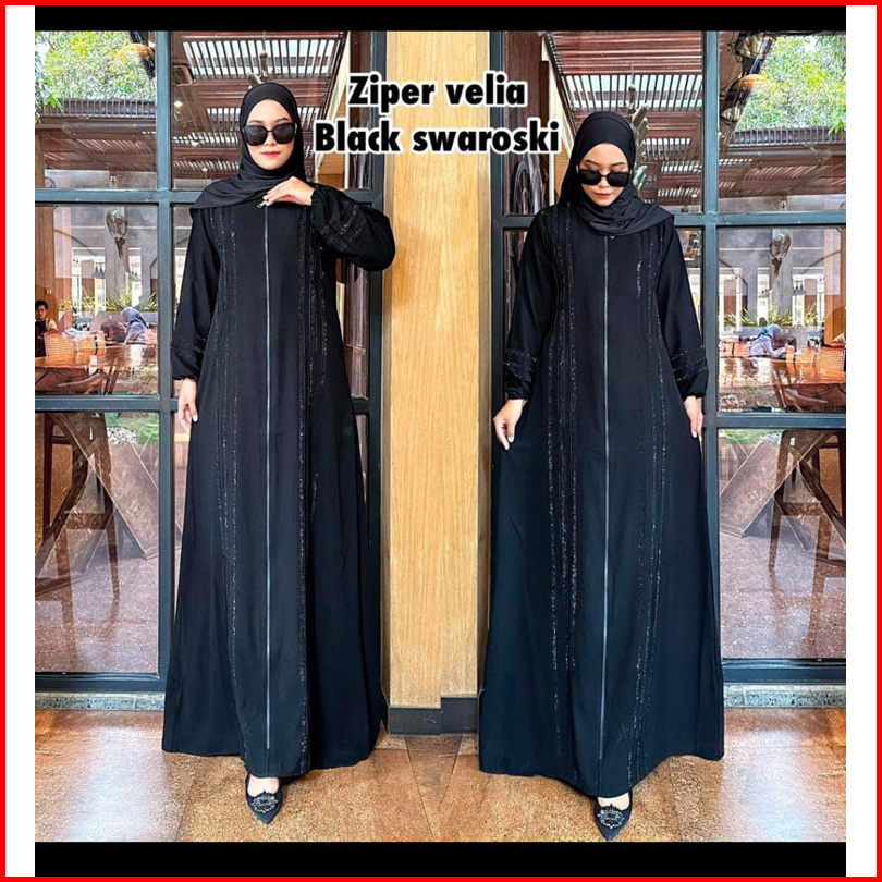 Abaya Basic Modern Arab Saudi Hitam Abaya Turkey Dhubai Hitam Motif Zyper Velia Kain Jetblack