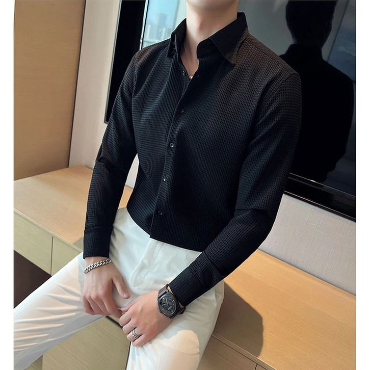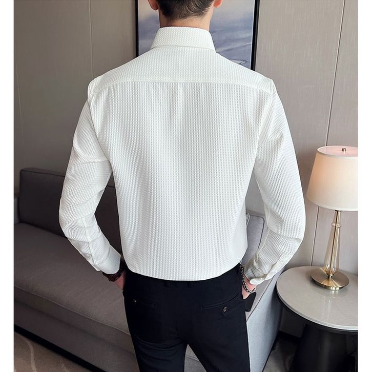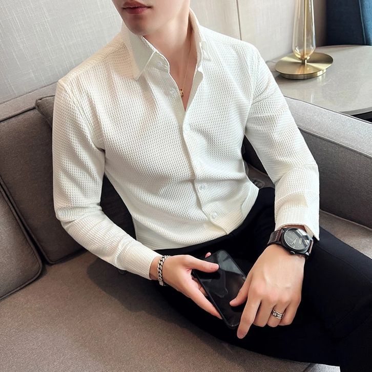 Kemeja Pria Waffle Knit Branded Terbaru Baju Atasan Lengan Panjang Polos Slimfit Putih Jumbo Bukan Cardinal
