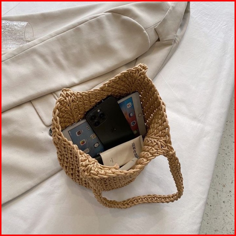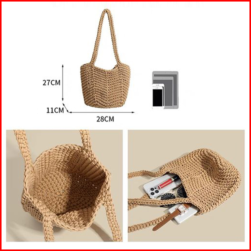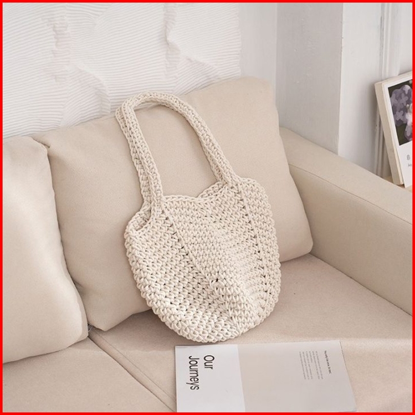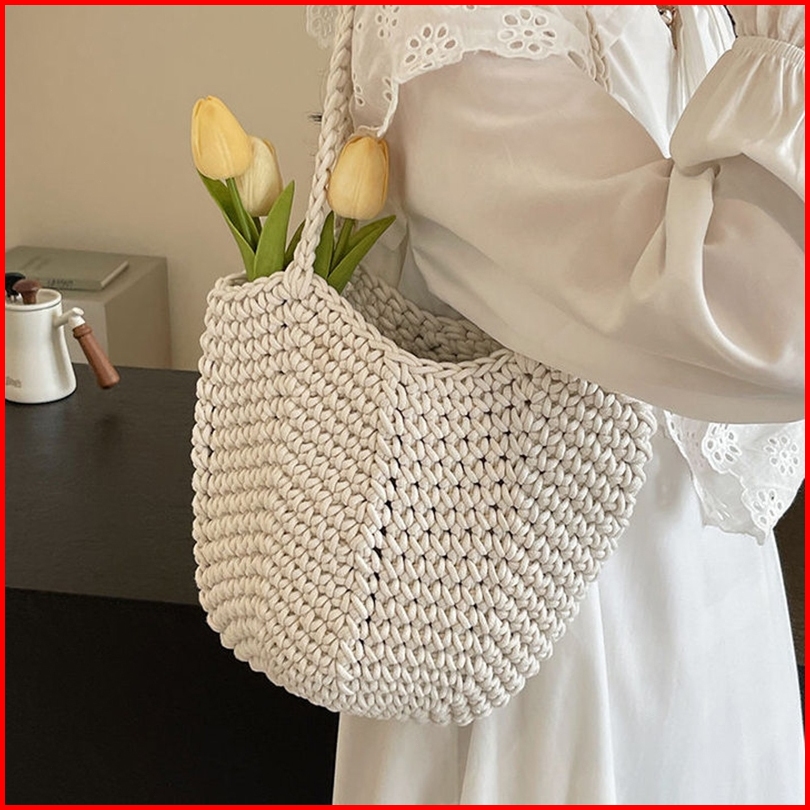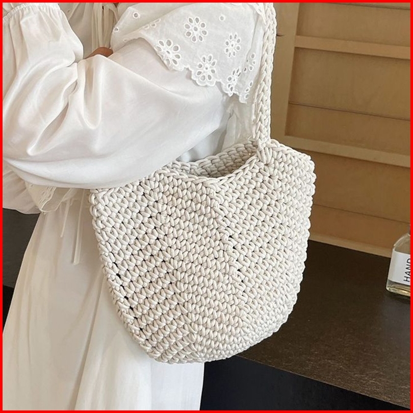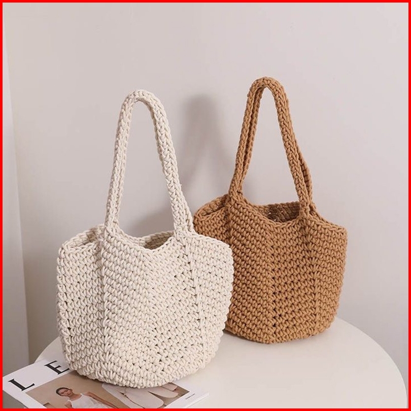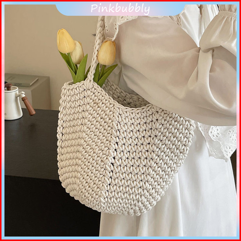Pinkbubbly.tas Tenun Ins 2024 Tas Bahu Gaya Korea Baru Tas Coklat Putih Tas Liburan Tas Pantai Tas Kasual Fashion Musim