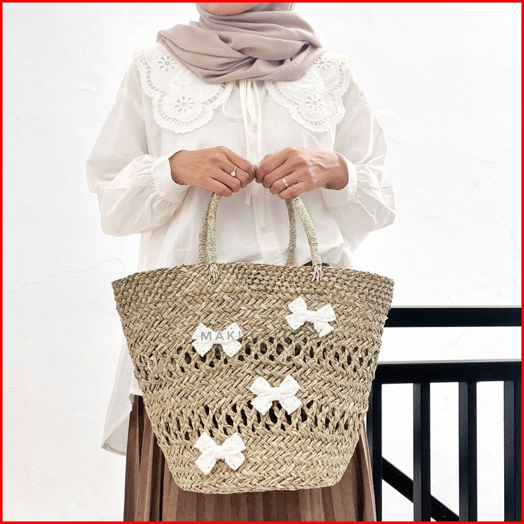 Tas Anyaman Pandan Mendong Handbag Kerajinan Etnik Wanita Bali Tas Pantai Vintage Natural Camelia By Maki Gallery