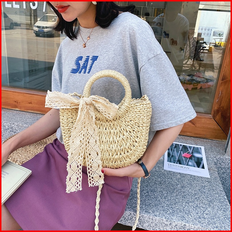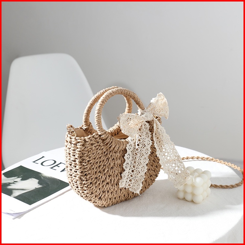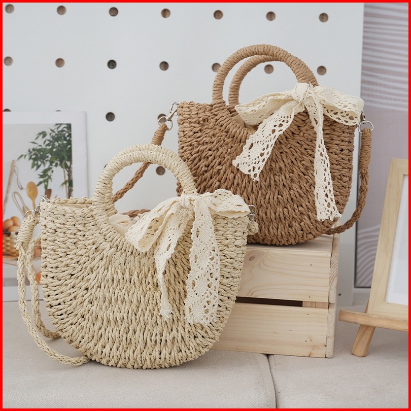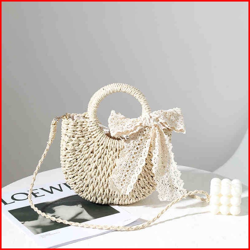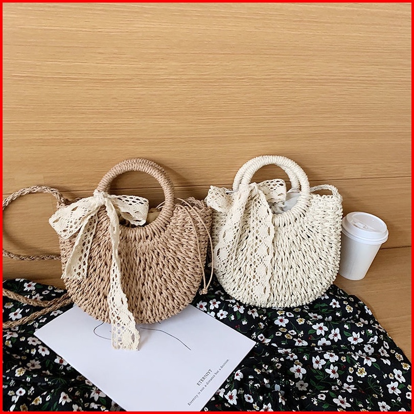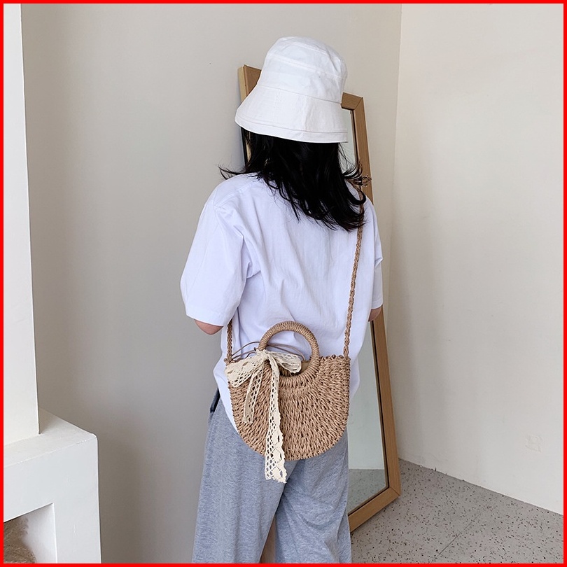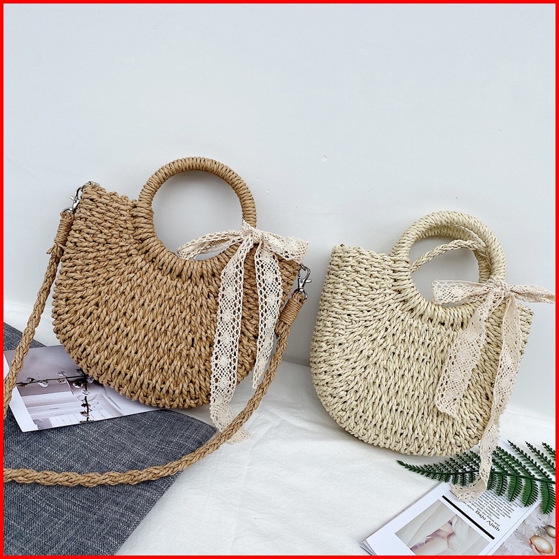 Tas Selempang Wanita Bahan Anyaman Rotan Sintetis Dengan Pita Sling Bag Import Wanita