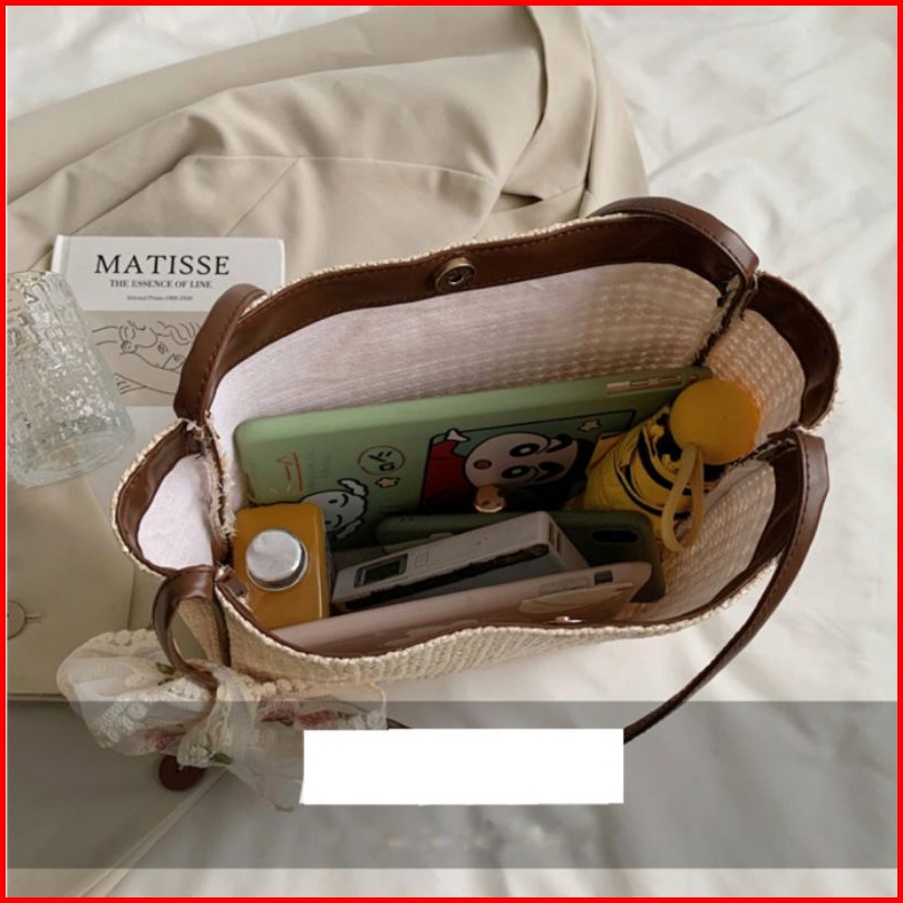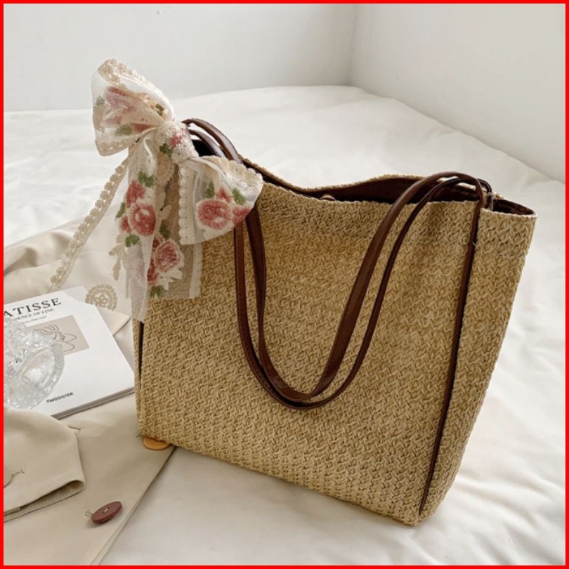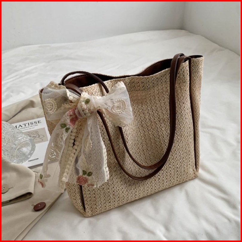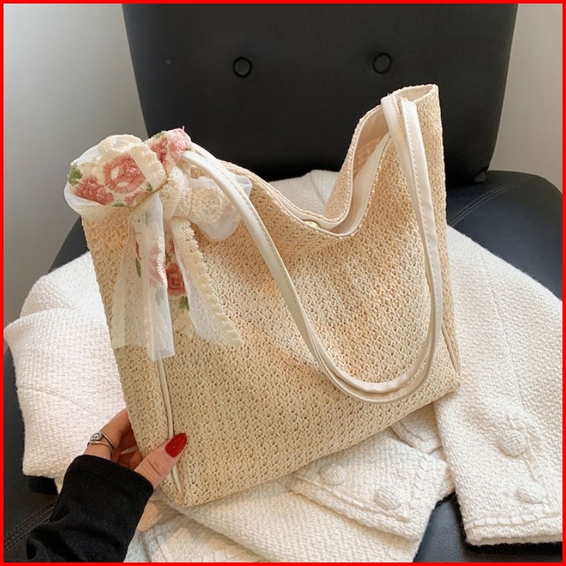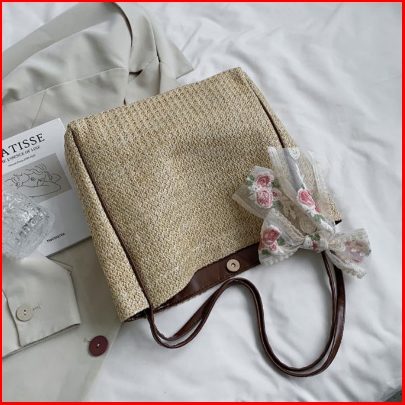 Tas Anyam Pita Lace Tw217 Rajut Jerami Etnik Unik Women Straw Shoulder Bag